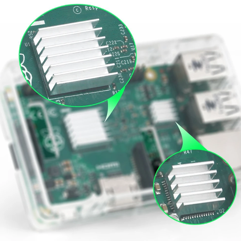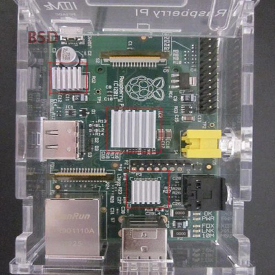 Три алюминия радиационное охлаждение Малина PI 3 2 B + (B увеличено) Характеристика Эти чистые алюминиевые радиаторы включают тепловую ленту, эффективные радиаторы теплопередачи, которые обеспечивают дополнительное охлаждение для подключения к электронным продуктам. Этот радиатор имеет слой изоляционной доски, чтобы его легко установить. Просто снимите его и вставьте его. Снижает риск повреждения оборудования из-за перегрева. Снижение риска повреждения оборудования из-за нагрева Процессор/память, сеть и чип питания PI для raspberry. Установка инструкции 1. Панель выключения 2. Убедитесь, что чип-модули чисты 3. Теплоотводы защитной втулки падают с основания 4. Чип-модуль для теплового бассейна Набор включает в себя Три резервуара для горячей воды из алюминиевого сплава
