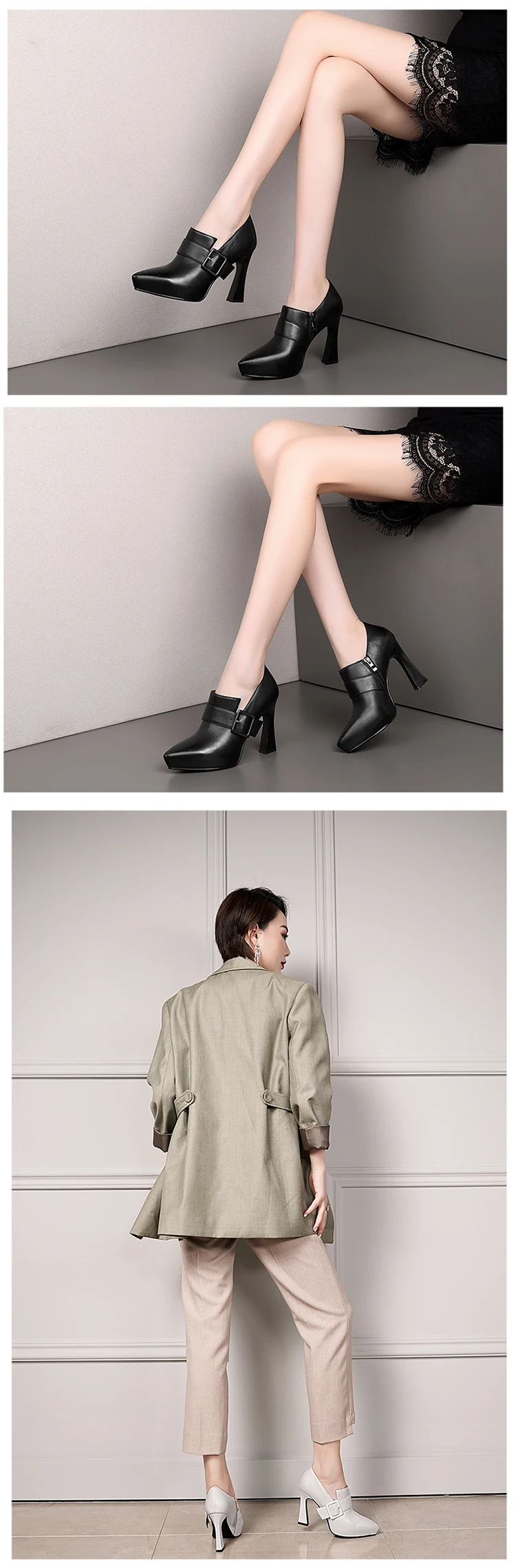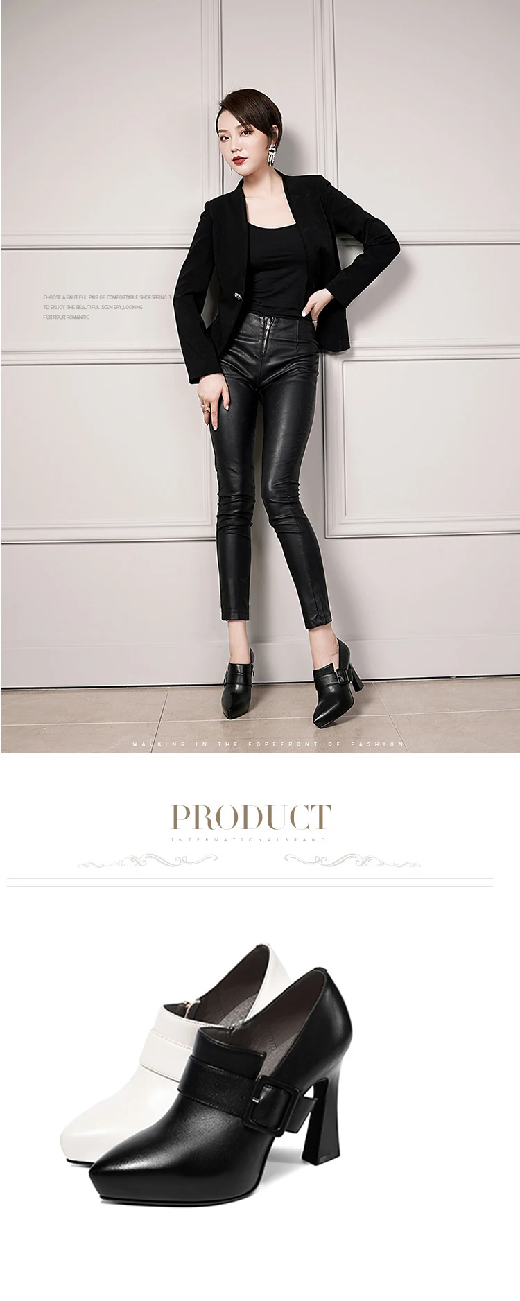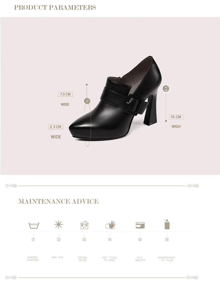 Типы цветов: черный и белый Размер: 34-39 Материал верха: Воловья кожа Внутренний материал: микрофибра Высота каблука: 10 см Водонепроницаемый: 2,5 см Примечание: указанные выше данные измеряются по стандарту 36 размера (1,5).