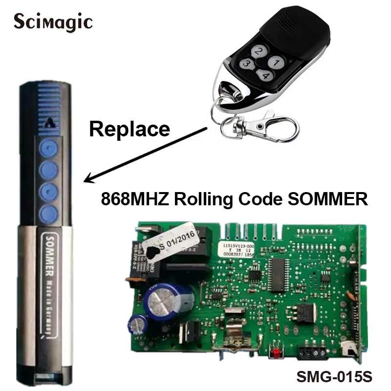 Программы для открытия ворот/гаражных дверей так же, как оригинальные пульты управления SOMMER, пожалуйста, обратитесь к руководству пользователя вашего приемника. Для типичного радиоприемника SOMMER FM 868,8 MHz Процедура программирования следующая: