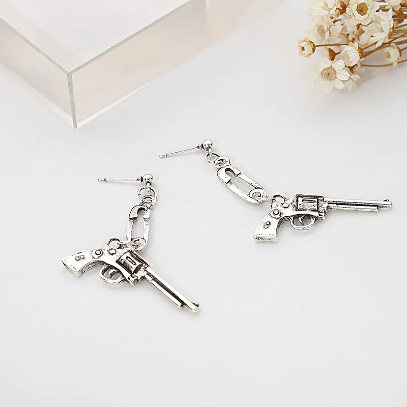 Новые крутые Асимметричные пистолеты наручники Висячие Серьги Висячие серьги для женщин и мужчин креативные вечерние ювелирные изделия в стиле панк забавные аксессуары