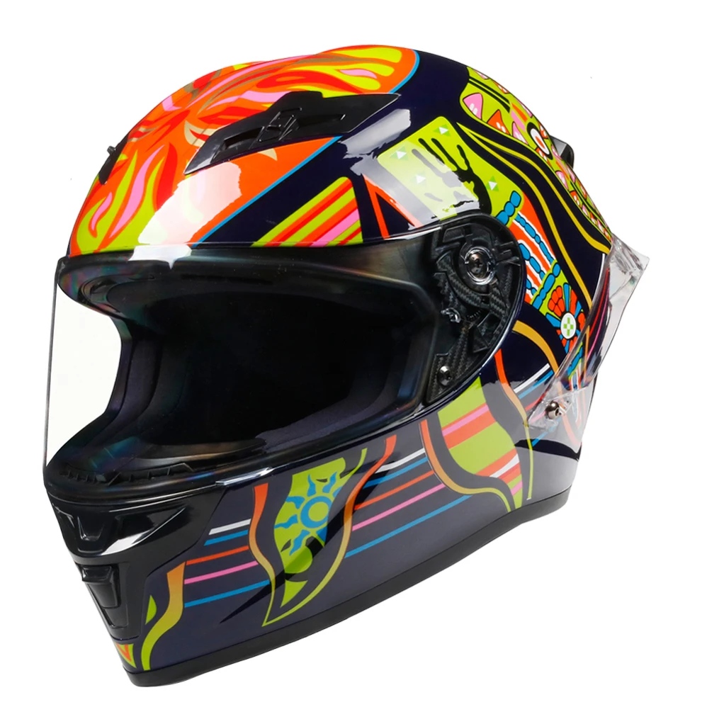 • Материал: АБС-пластик • Вес: 1550 г ± 50 г • Размер: S, M, L, XL, XXL • Сертификация качества: DOT • Двойная D гоночная пряжка • Со съемным козырьком и спойлером • Съемная и моющаяся подкладка
