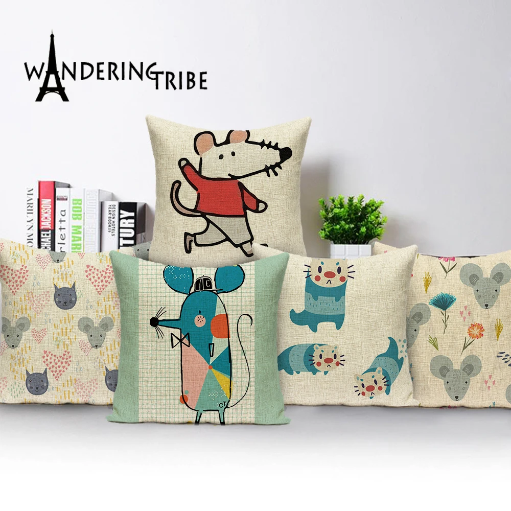 Милые домашние декоративные подушки с мышкой, чехол с животными, 2019, Новогодние декоративные подушки для гостиной, диванные подушки
