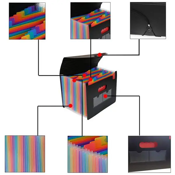 24-слойная Большая Сумка для документов Радужный аккордеон А4 классификация тестовые бумаги инструмент бизнес расширение папки файлов подача продуктов 2