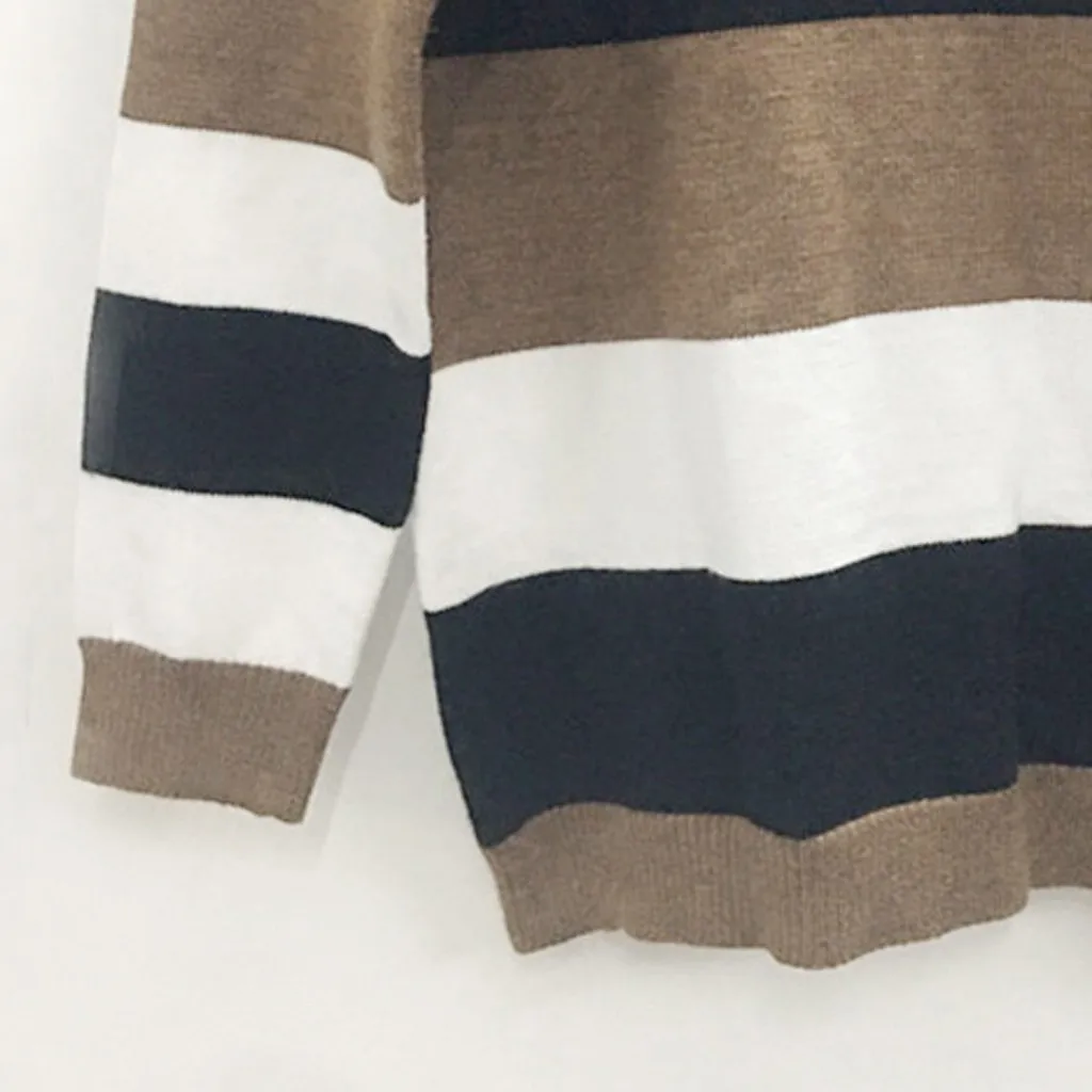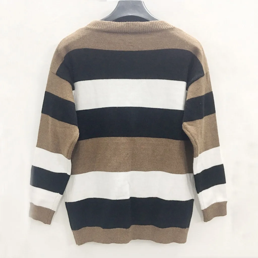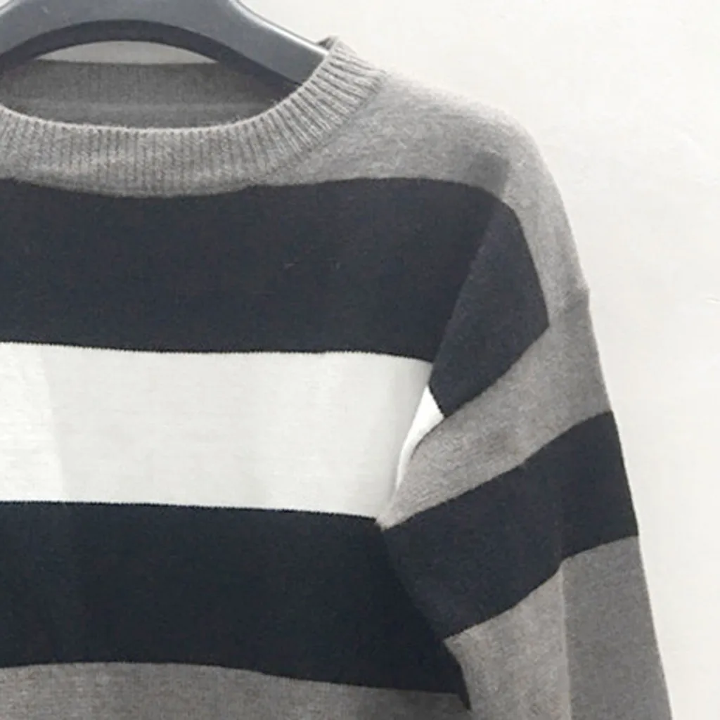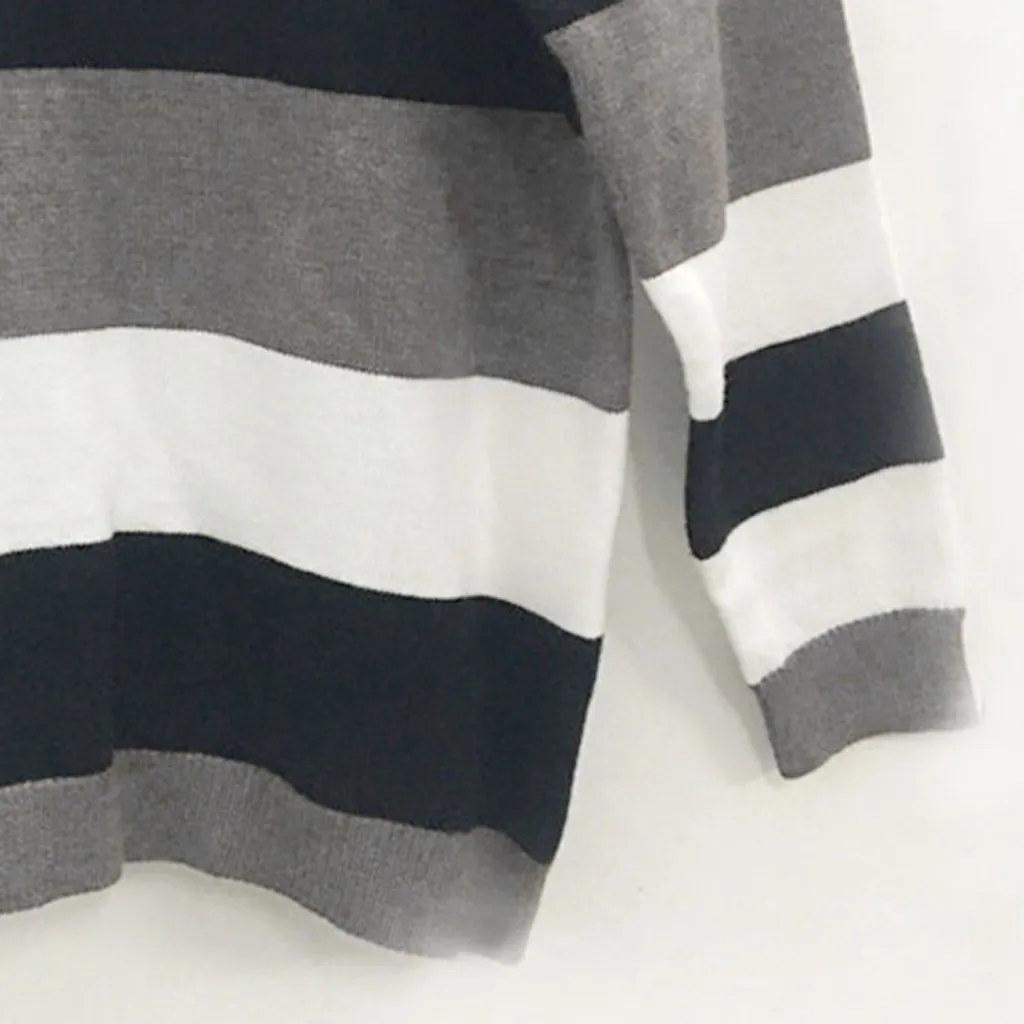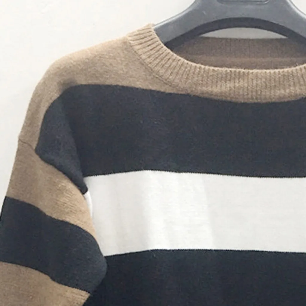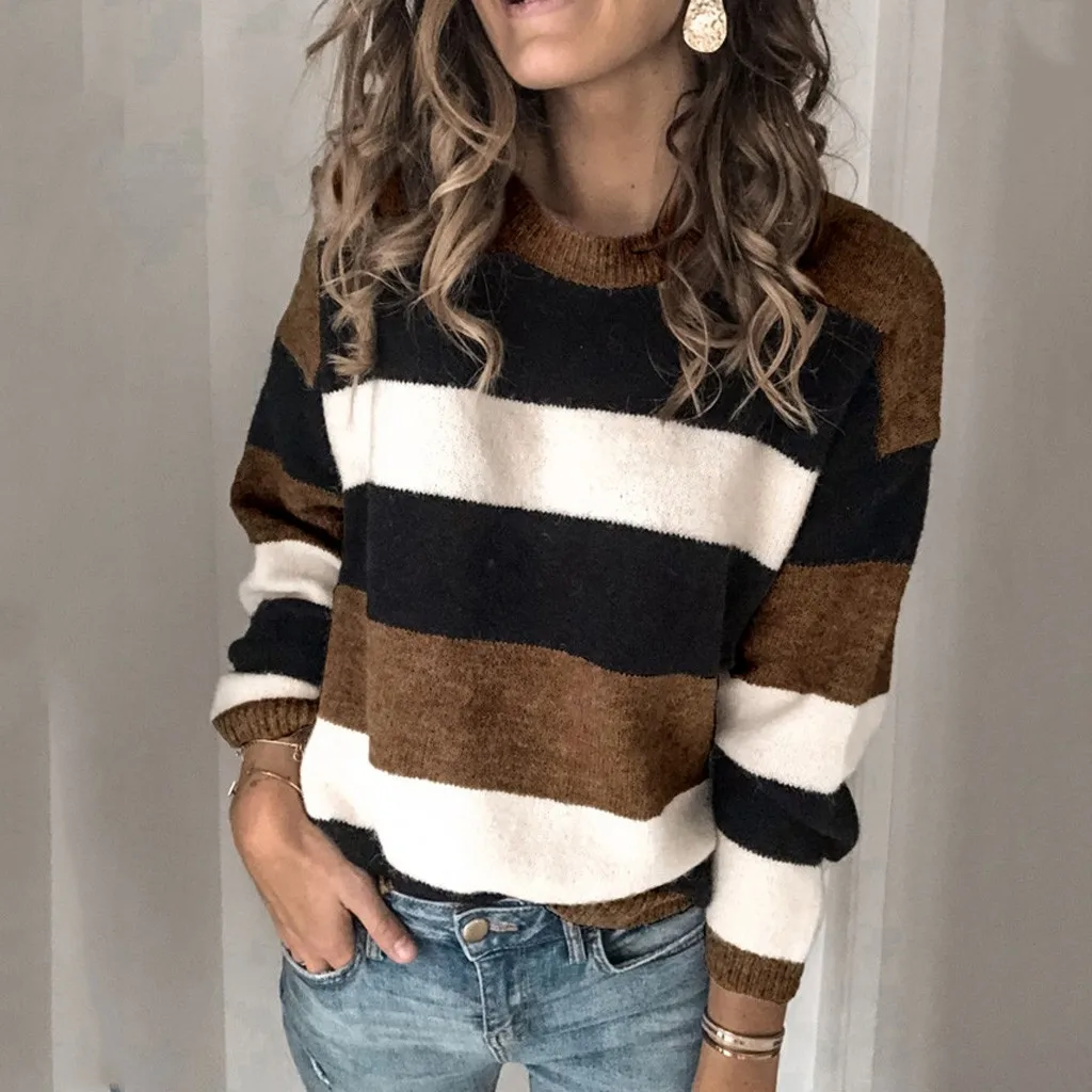 Мода женщин o-образным вырезом с длинным рукавом полосатый принт Повседневный вязаный свободный свитер Топ