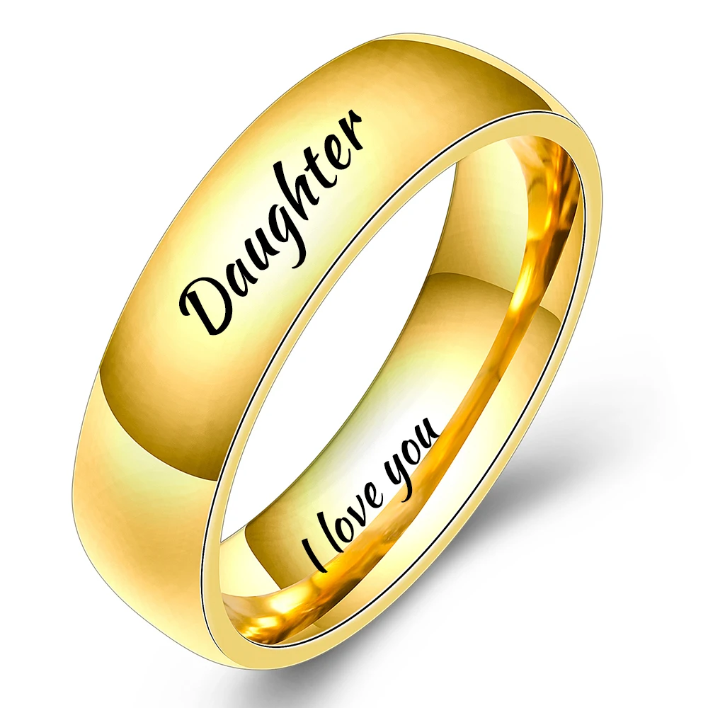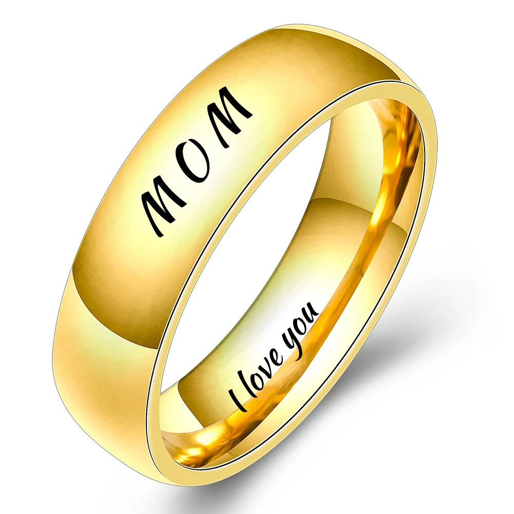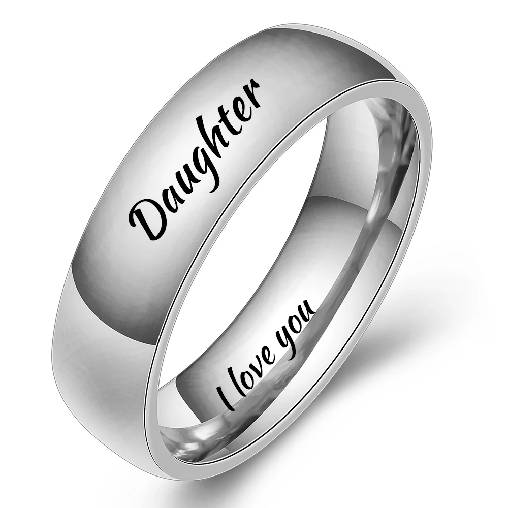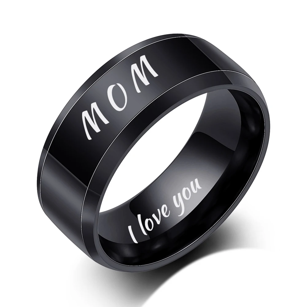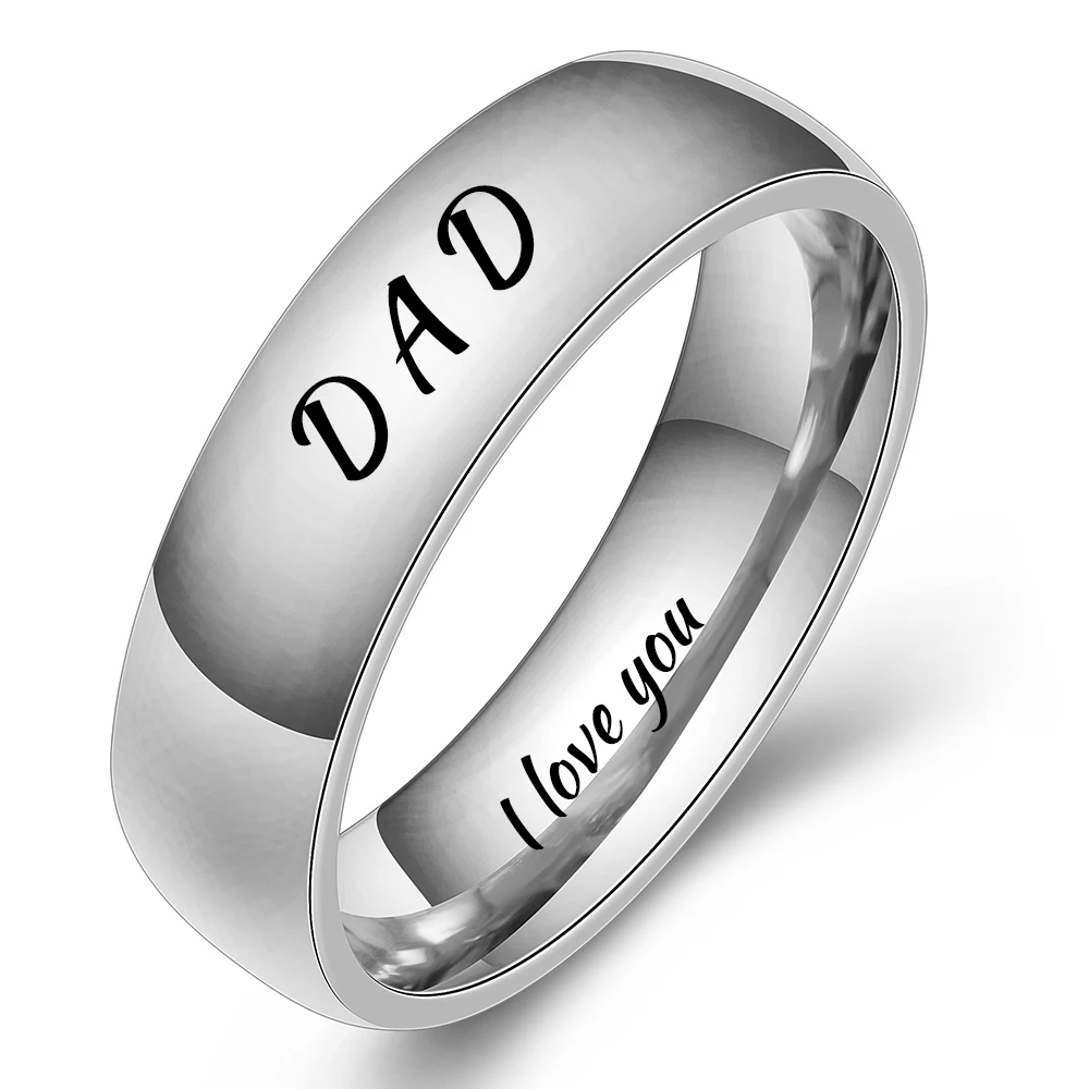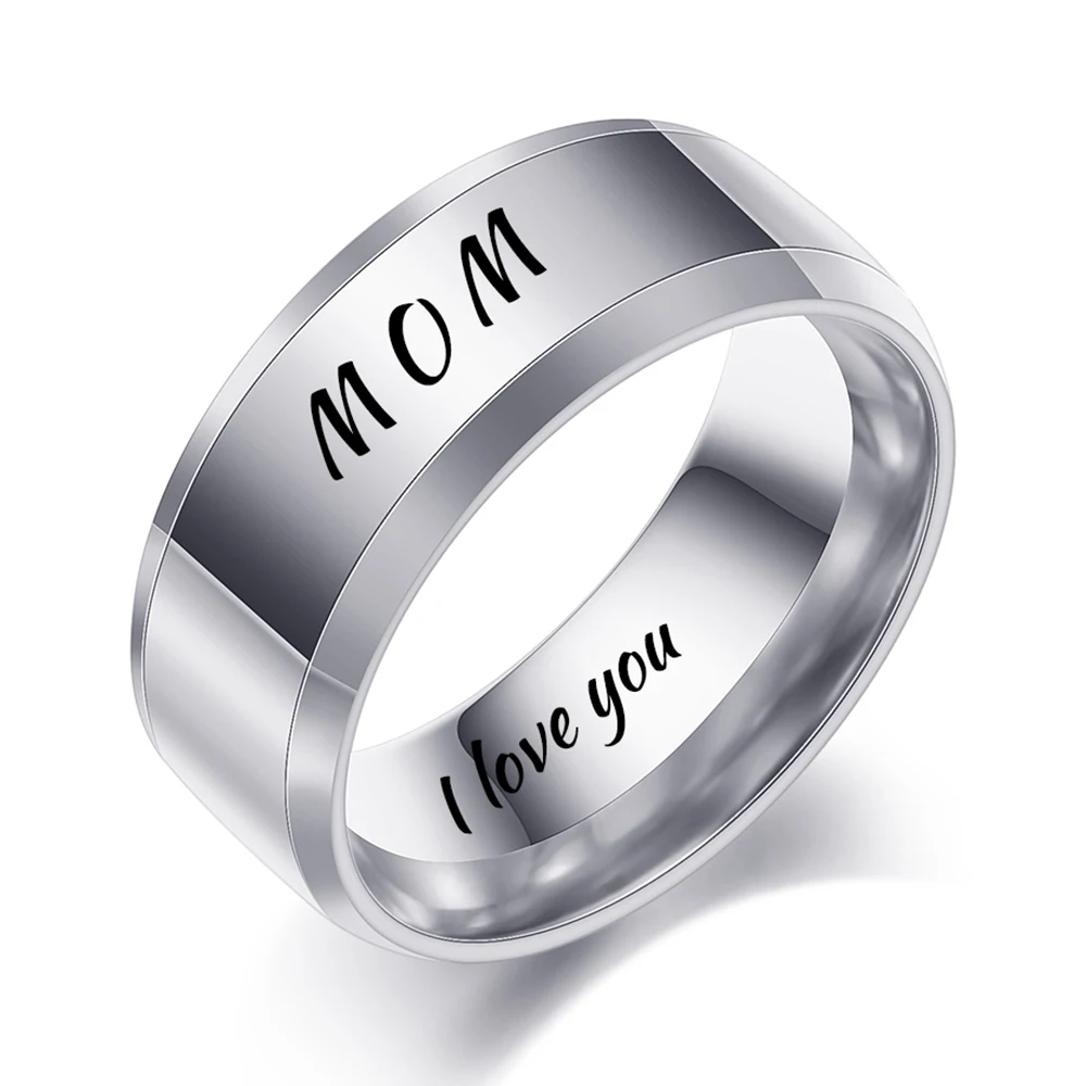 Модные полированные ювелирные изделия гравировка имя Дата логотип кольцо оптом из нержавеющей стали обручальные брендовые кольца для мужчин и женщин