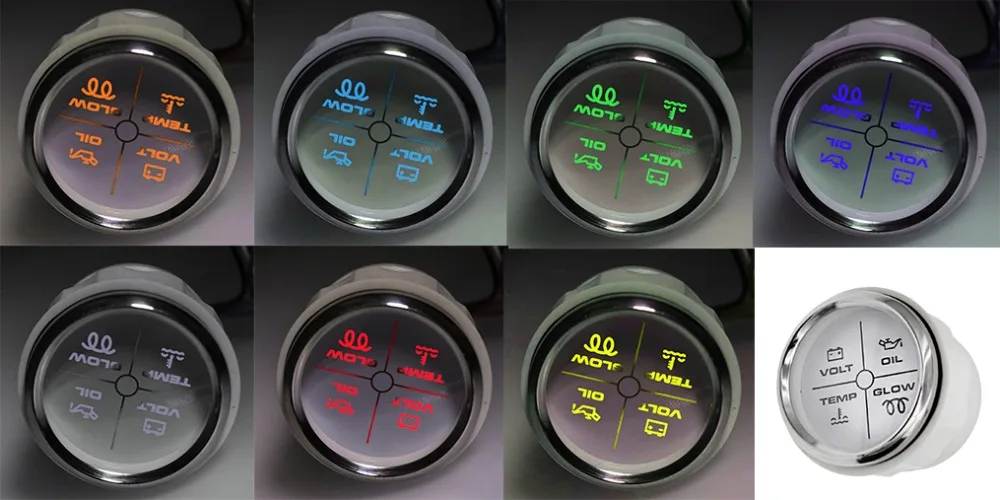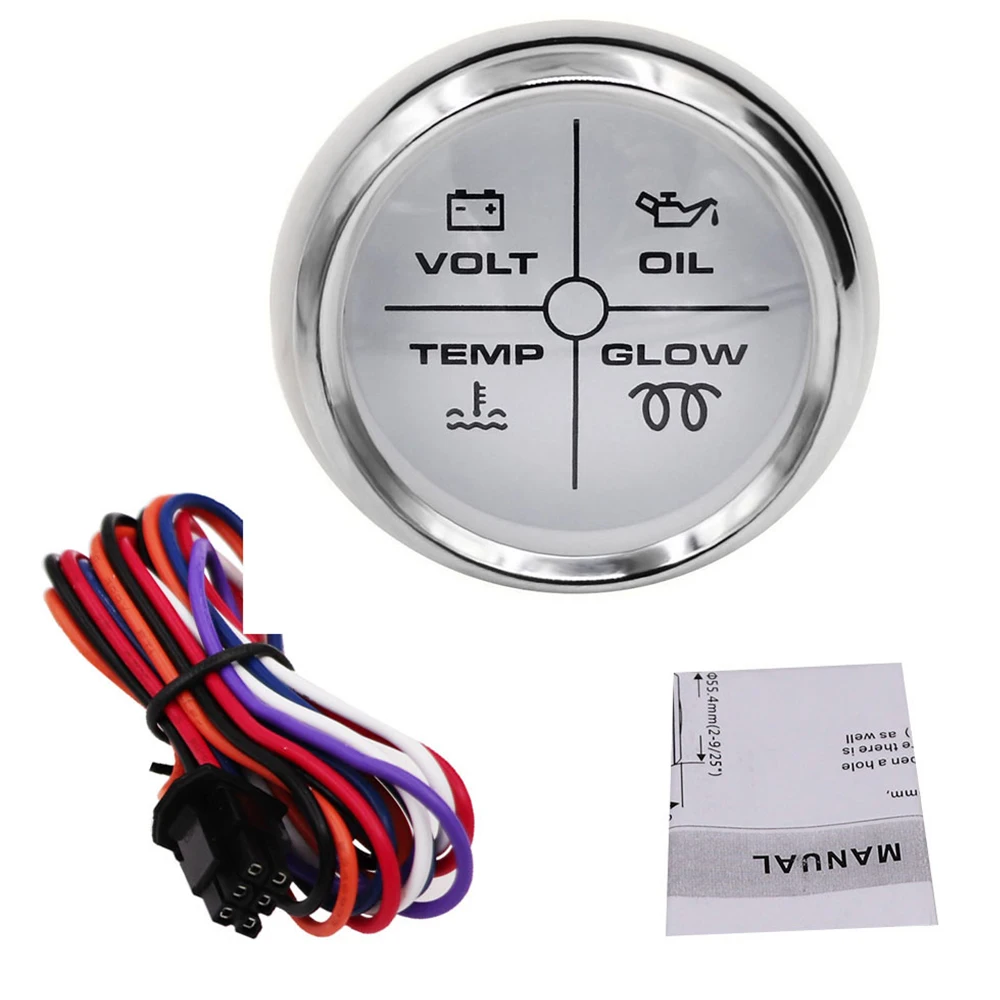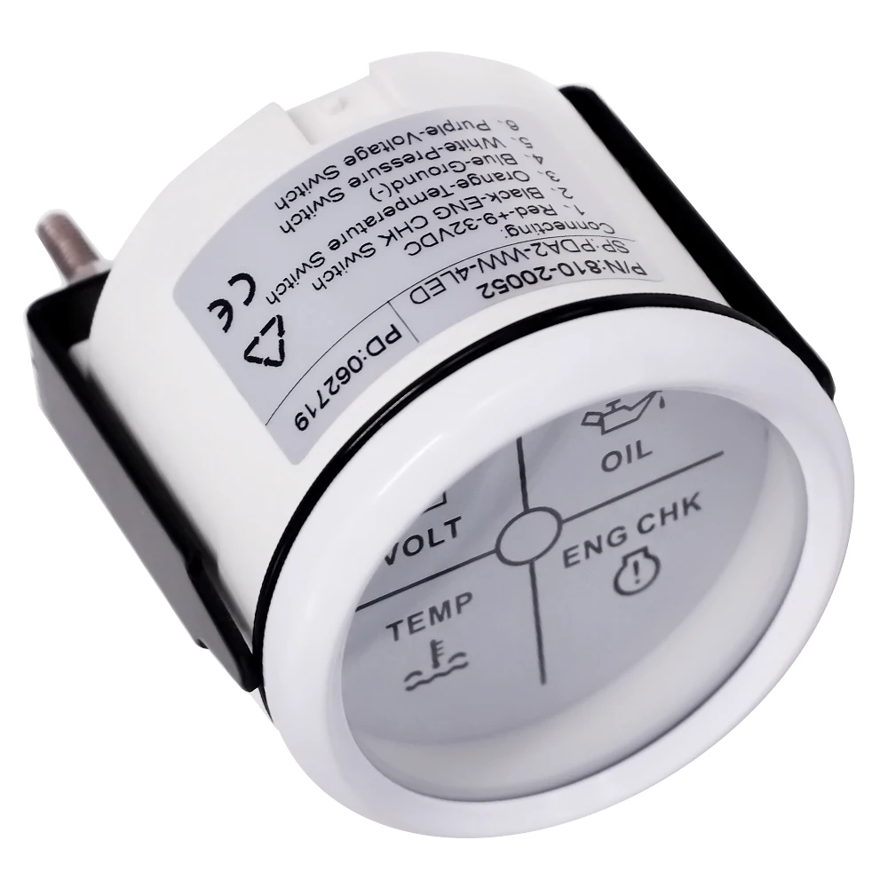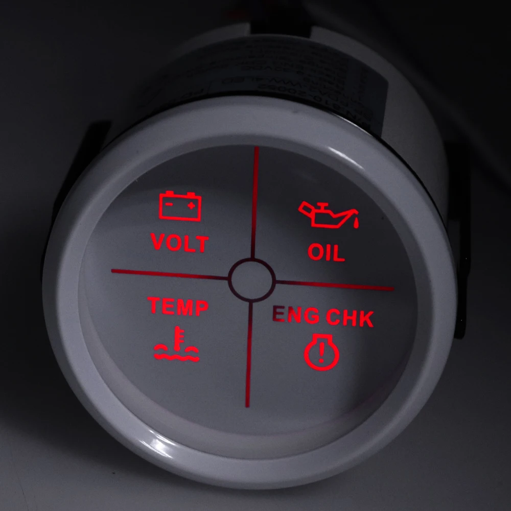 Размер крепления: 52 мм (2 '')Диапазон индикации: вольт, CHK двигатель, температура воды, сигнализация давления масла
