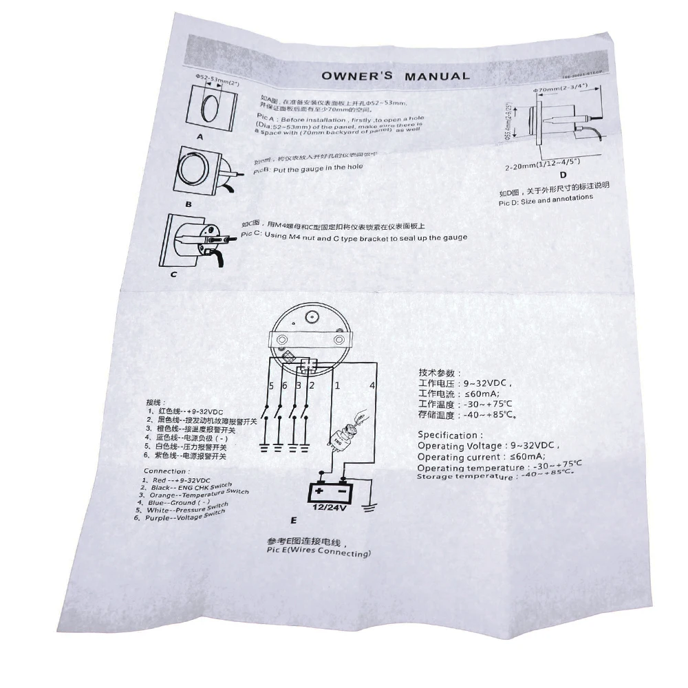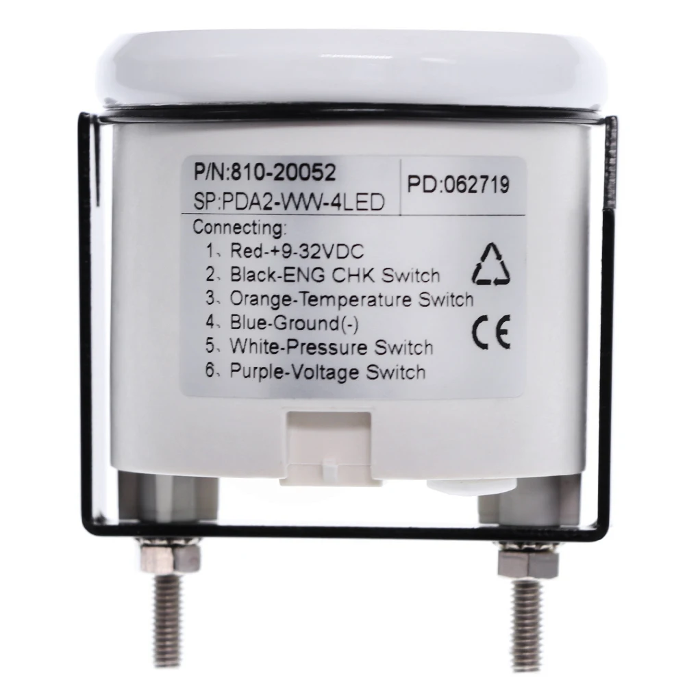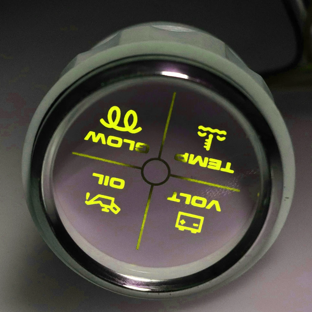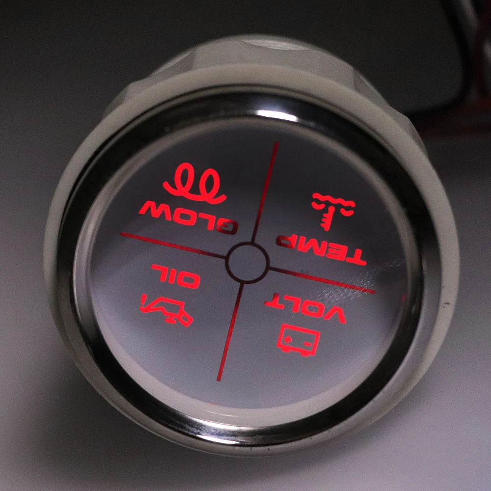 Размер крепления: 52 мм (2 '')Диапазон индикации: вольт, CHK двигатель, температура воды, сигнализация давления масла