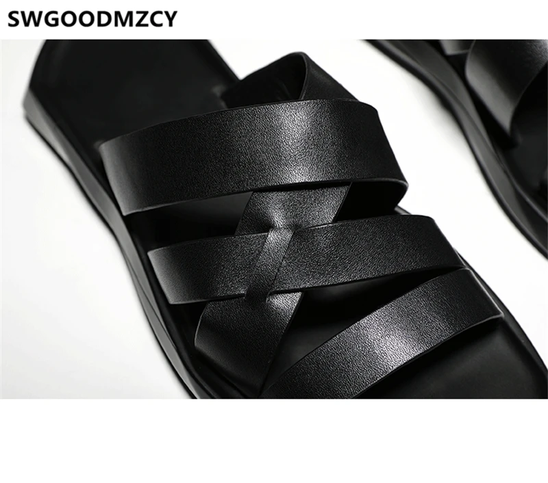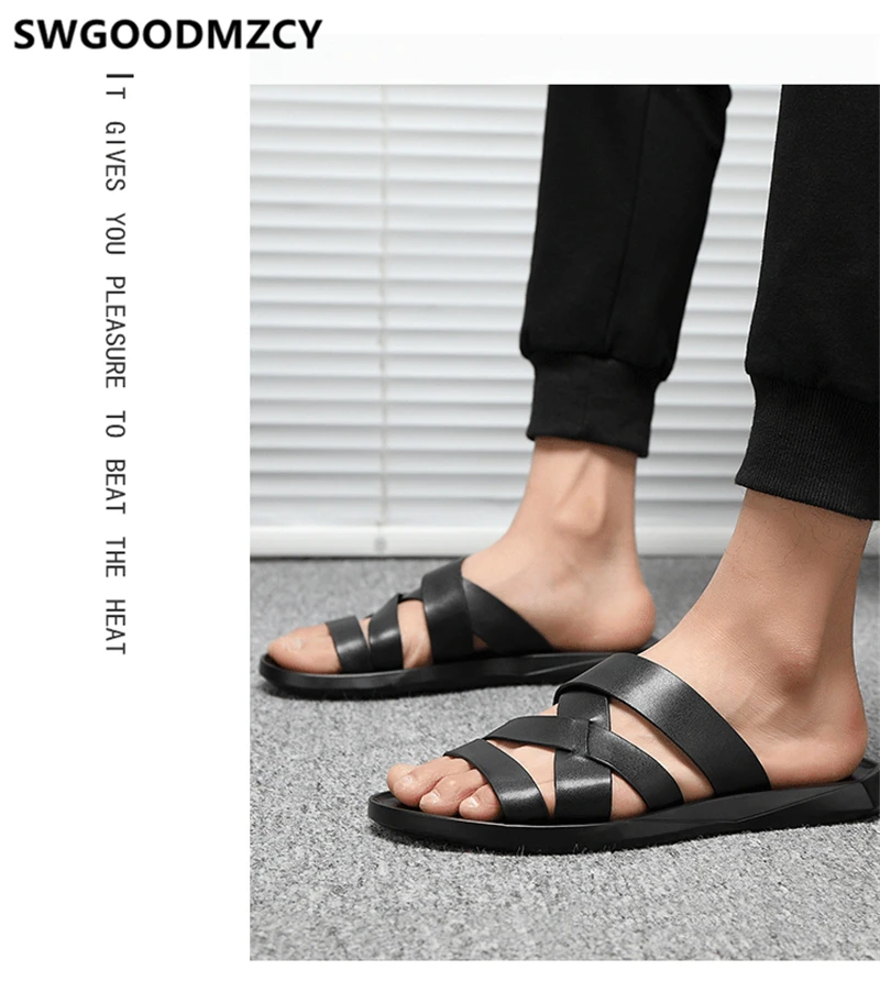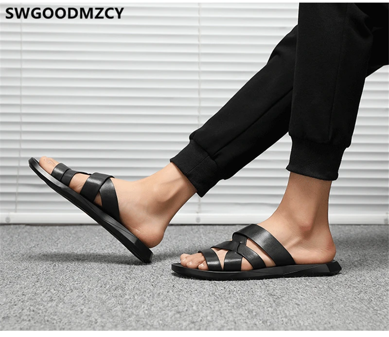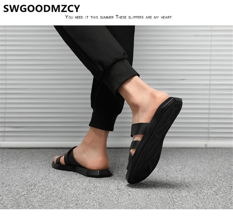 COOLVFATBO/мужские шлепанцы Летняя мужская обувь на плоской подошве Дышащие пляжные
