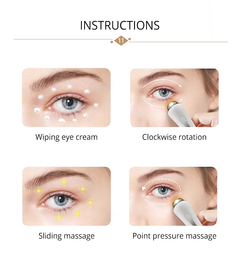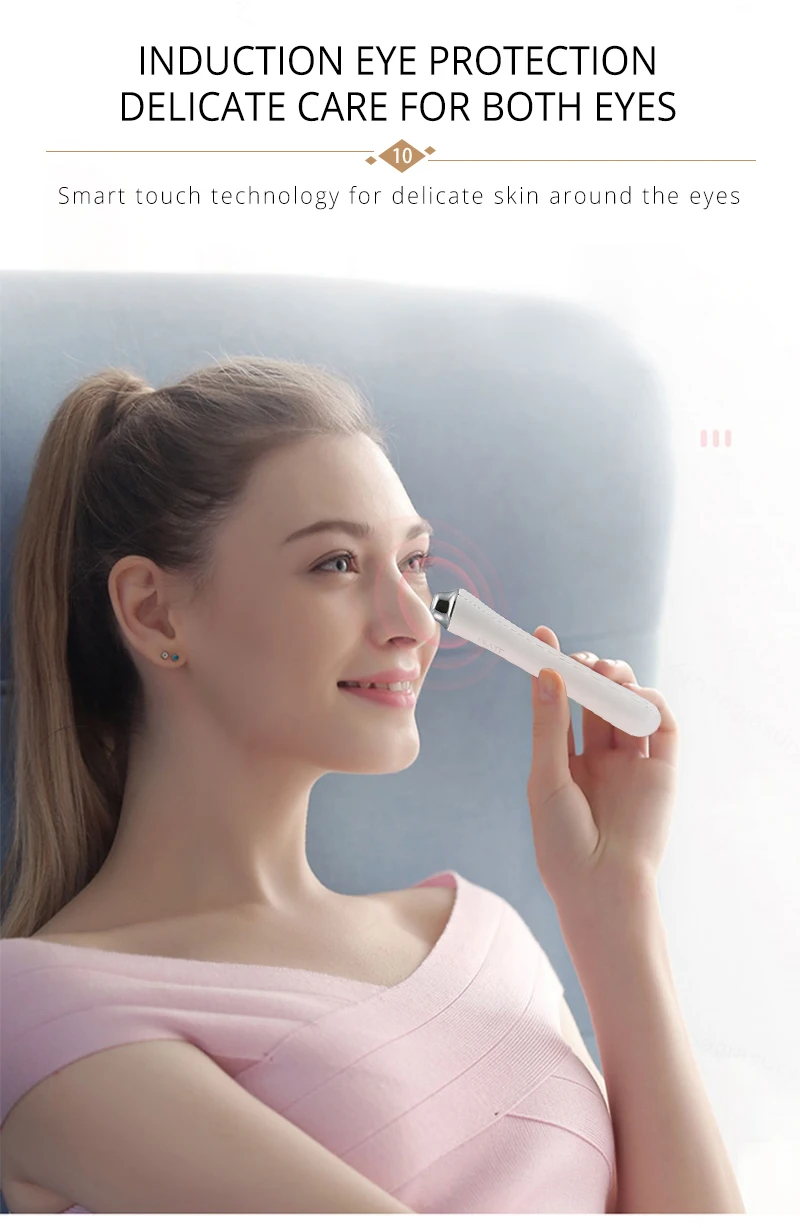 5. Наклонная металлическая Массажная головка адаптируется к контуру глаз и губ.