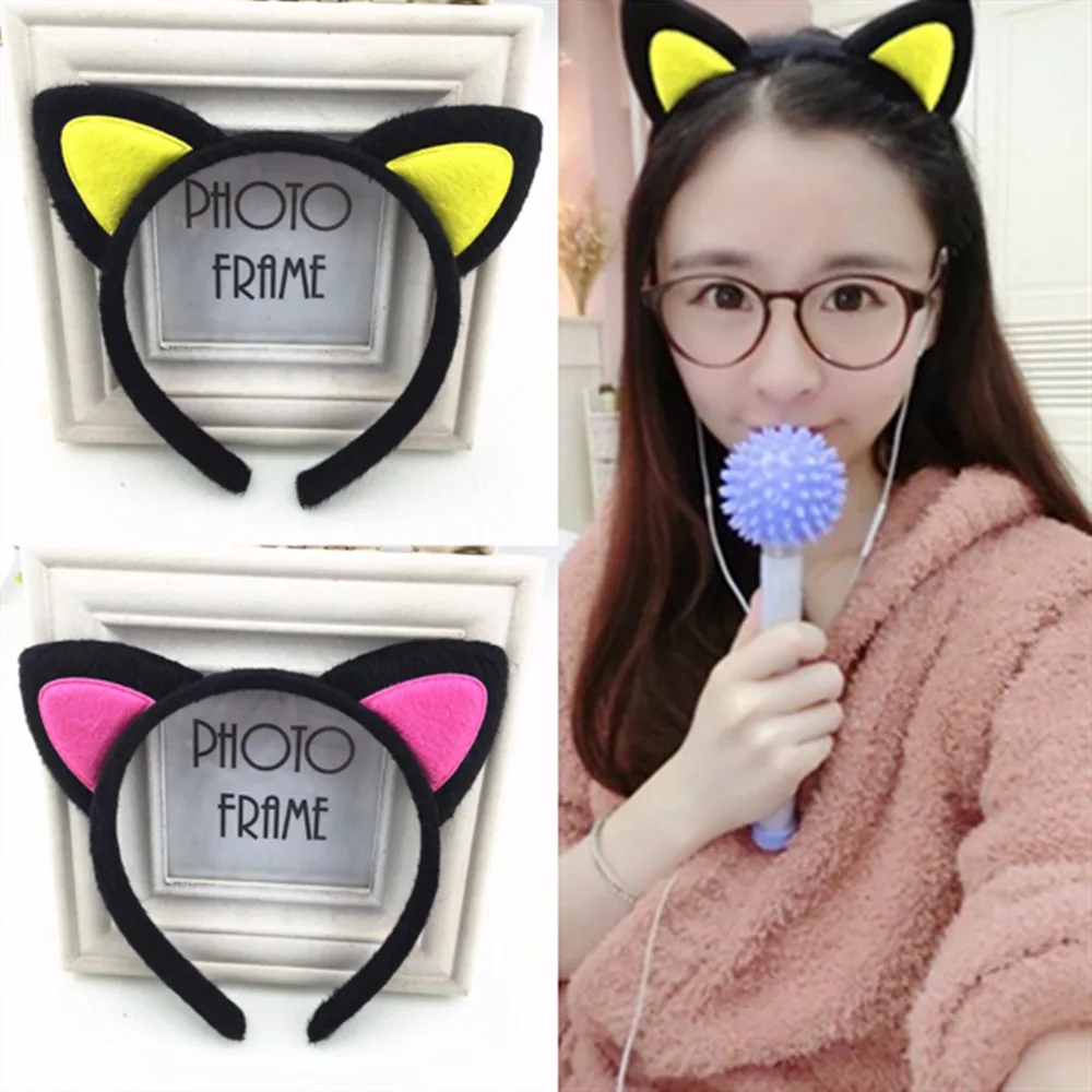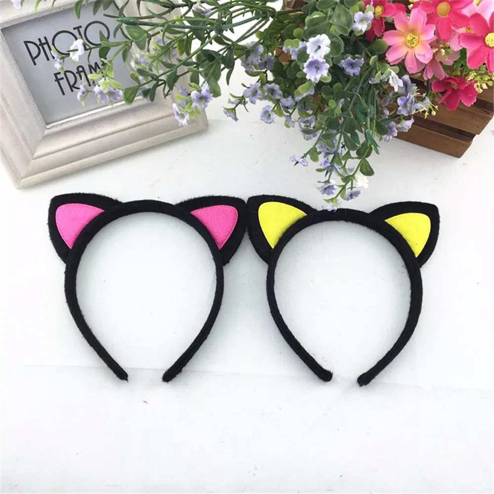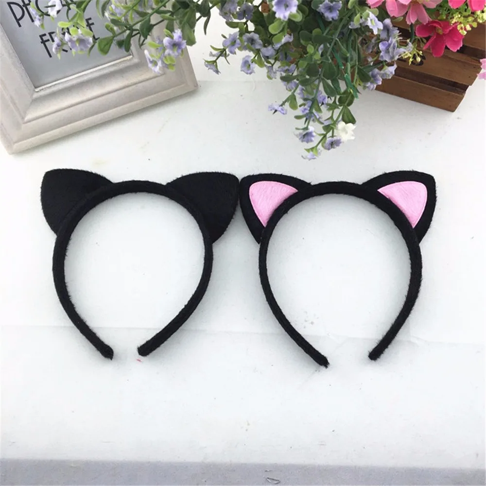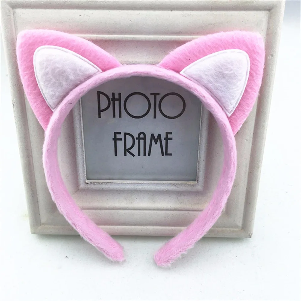 Повязка на голову с пушистыми кошачьими ушками в Корейском стиле, милый мультяшный ободок с широкими краями, женские аксессуары для волос