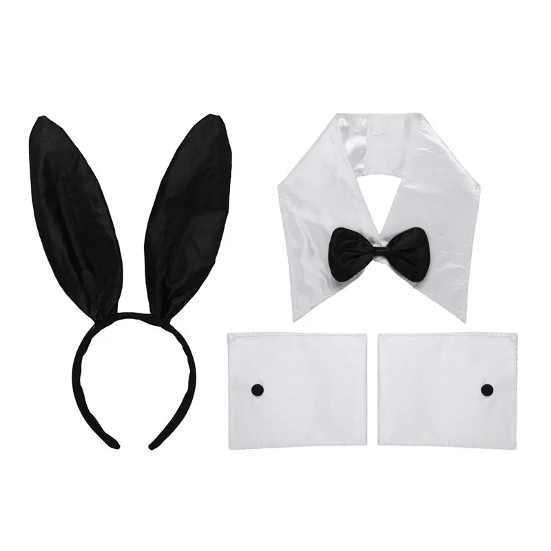 Женский маскарадный костюм с кроликом для девочек, ободок с кроличьими ушами, воротник с бантиком, комплект с манжетами на Хэллоуин, платье для вечеринки