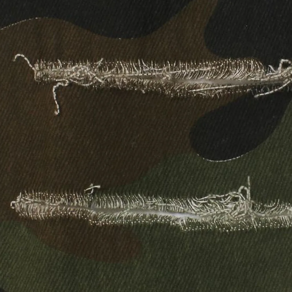 Женские камуфляжные рваные джинсы на молнии с карманами, повседневные джинсовые узкие расклешенные брюки