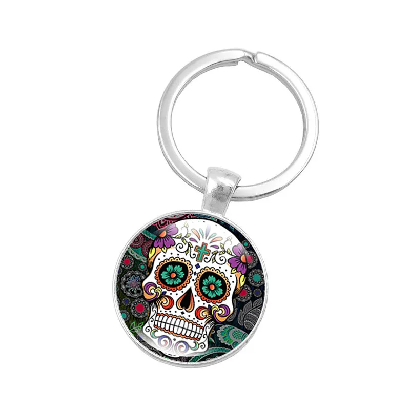 Новинка 2019, брелок с сахарным черепом в стиле мексиканского народного искусства, стеклянная подвеска, брелок, ювелирное изделие, праздничный подарок
