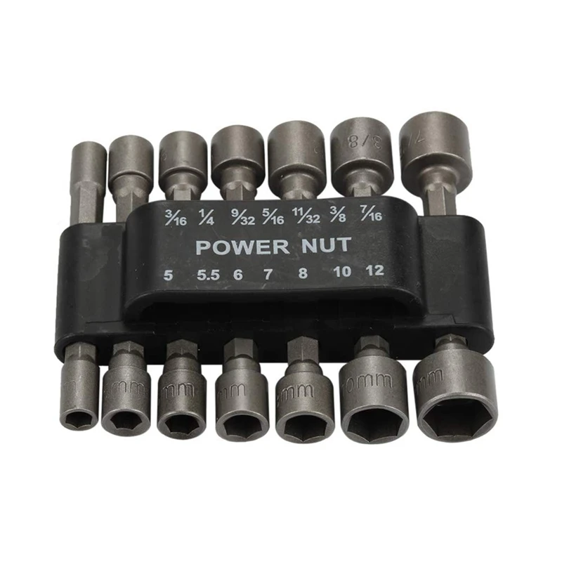 14 шт., электрогайки, инструменты, набор сверл для драйвера, метрический торцевой гаечный ключ, винт 1/4 дюйма, шестигранная гайка, набор для отвертки, подходит для большинства проводных или беспроводных дрелей, прочная Внутренняя шестигранная муфта