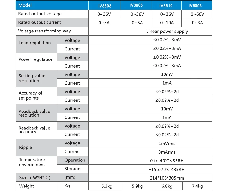 Программируемый источник питания постоянного тока Настольный Линейный источник питания Регулировка IV3600 серии 36V/60V 3A/5A/10A низкая пульсация низкий уровень шума