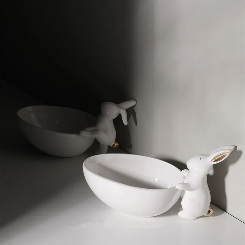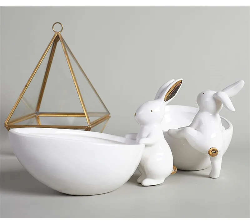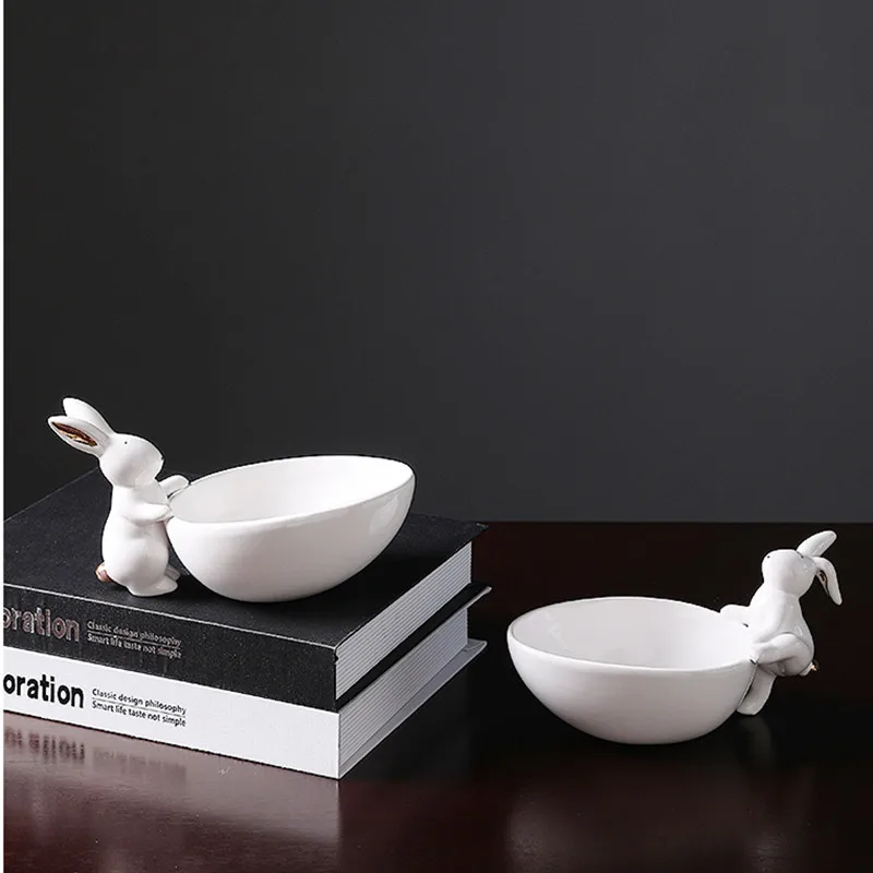 [Товар] керамическая Фруктовая тарелка, украшение для хранения кролика, креативная Закусочная тарелка, нордические украшения, пасхальный подарок, подарок на новоселье [Цвет]: белый Материал: керамика [Размер крепления]: [Посылка]: 1 шт. * пустая полка