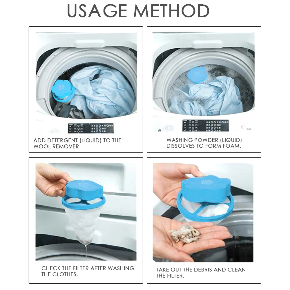Плавающий Ловец шерсти питомца захватывает излишки шерсти домашних животных и ворс в сеть. Бросьте его в стиральную машину и он плавает справа сверху. Эффективно удаляет шерсть домашних животных от прилипания на одежде.