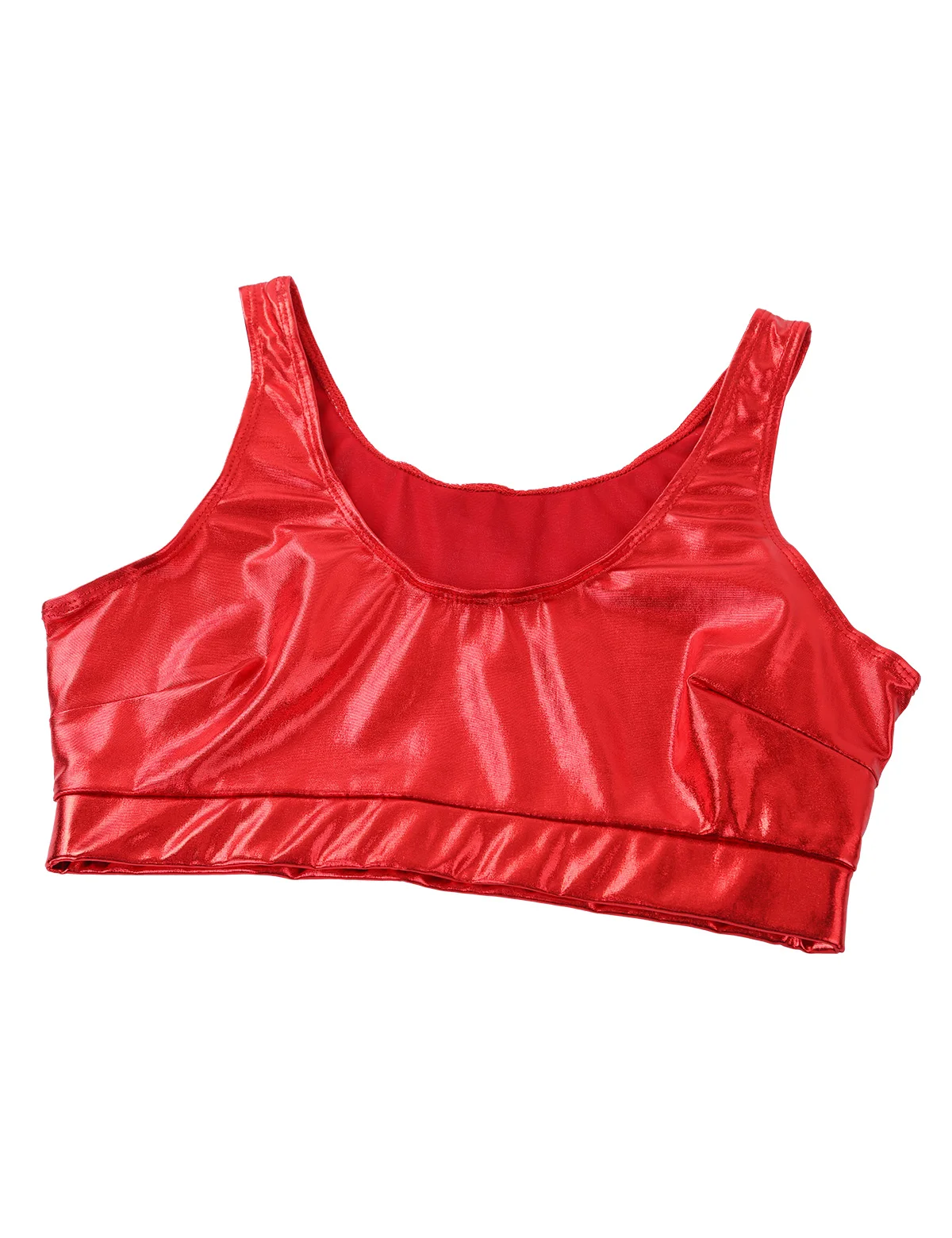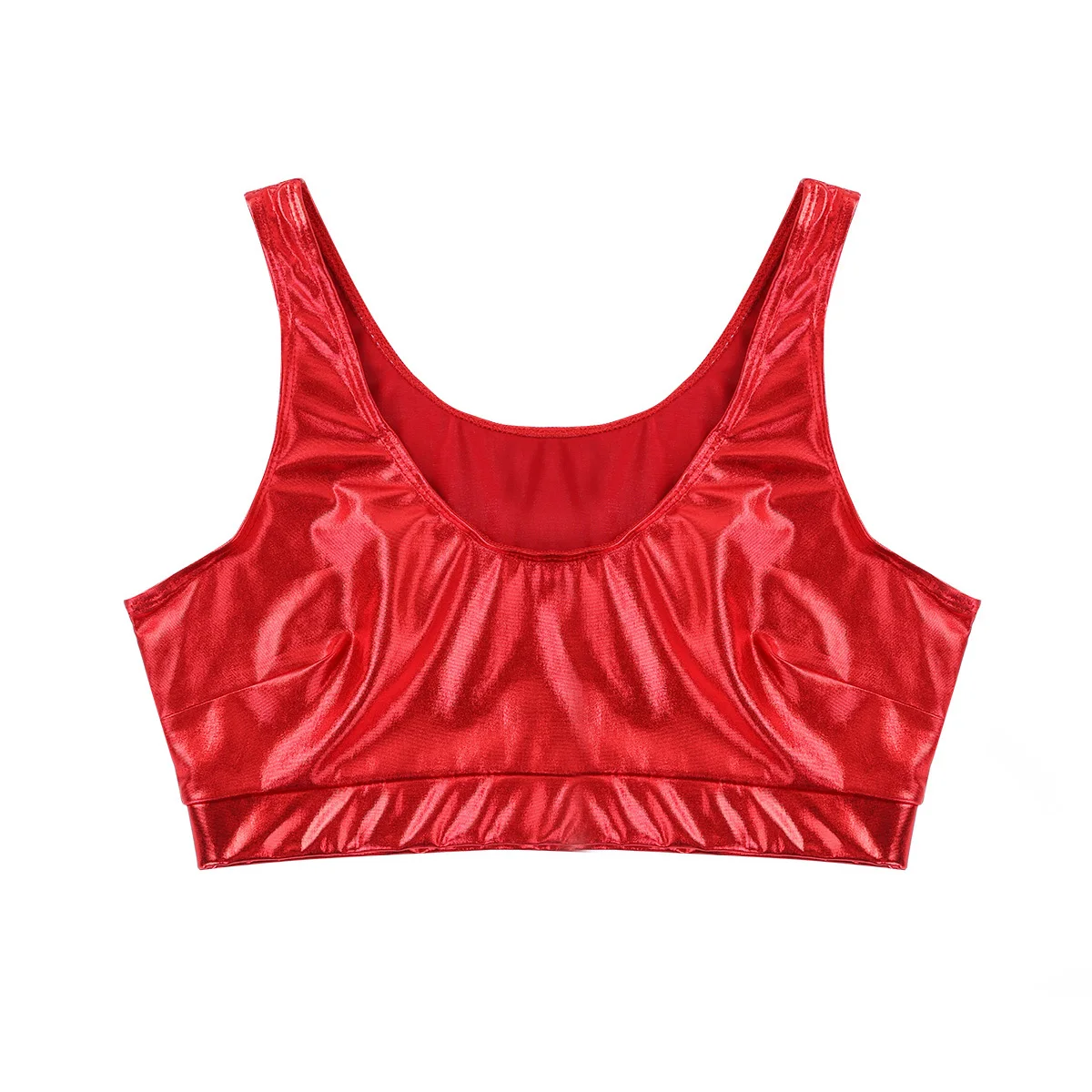 Без рукавов и с овальным вырезом, металлический укороченный топ сделает вас очаровательным и шикарным. Без застежки, облегающий крой.
