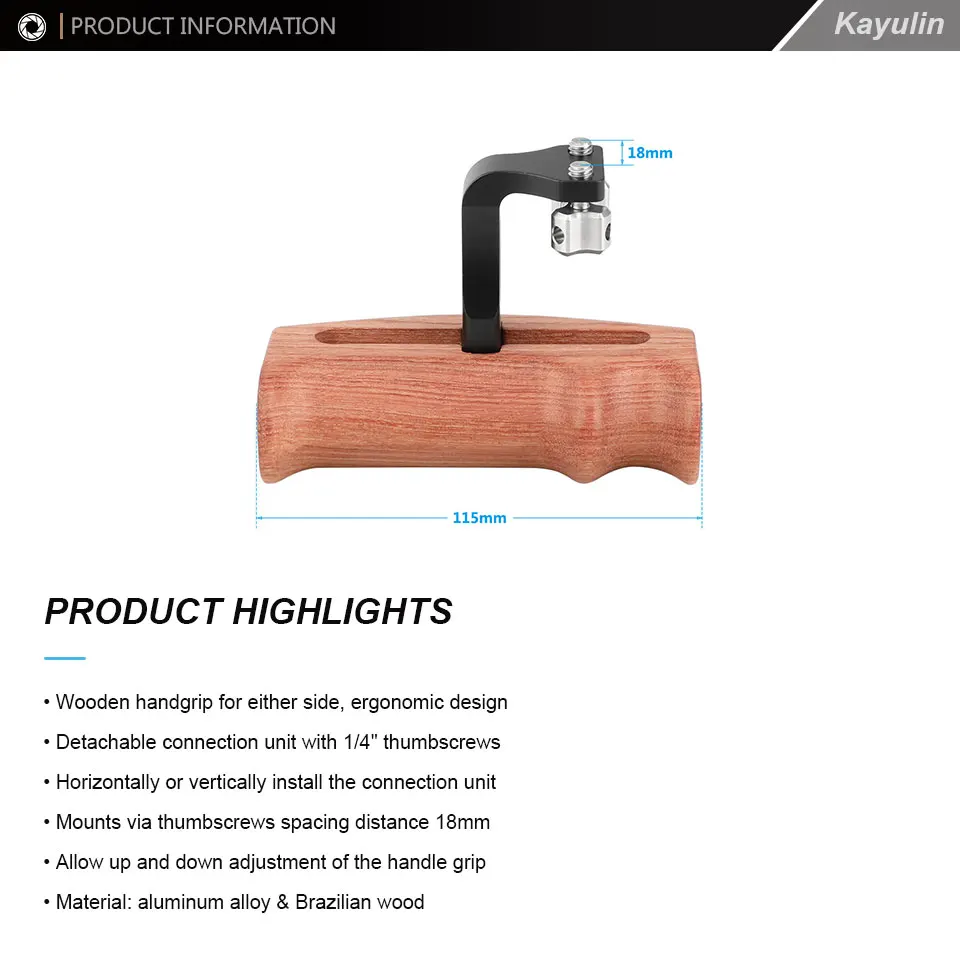 • Деревянная рукоятка универсально применима для установки клетки камеры DSLR, клетки видео DV, установки Красной камеры и так далее.