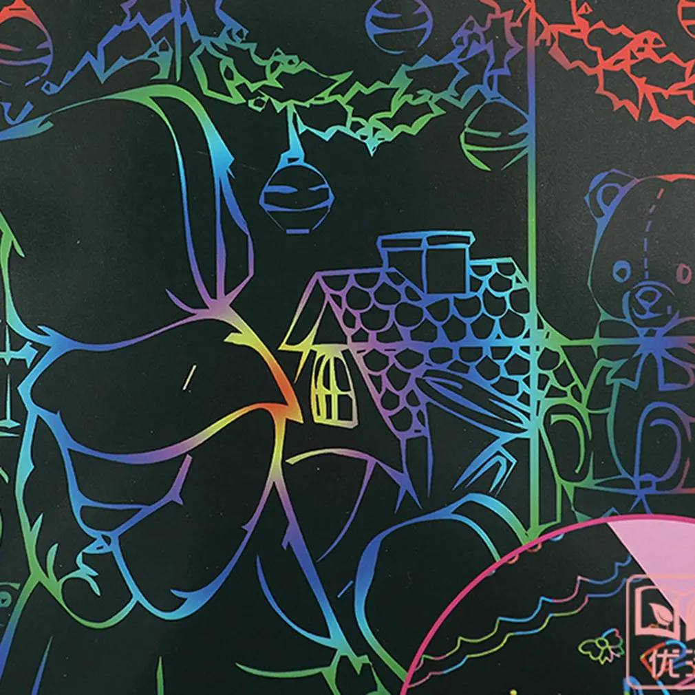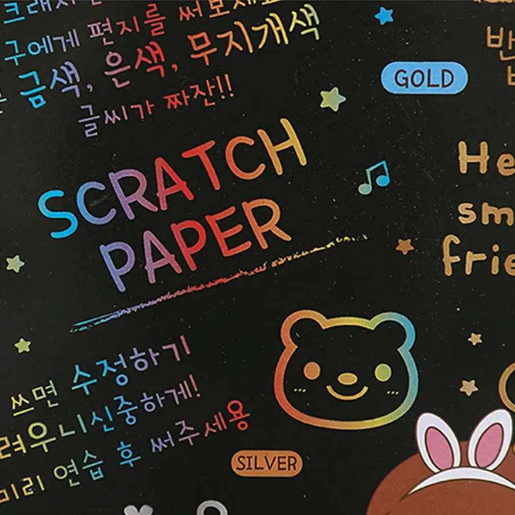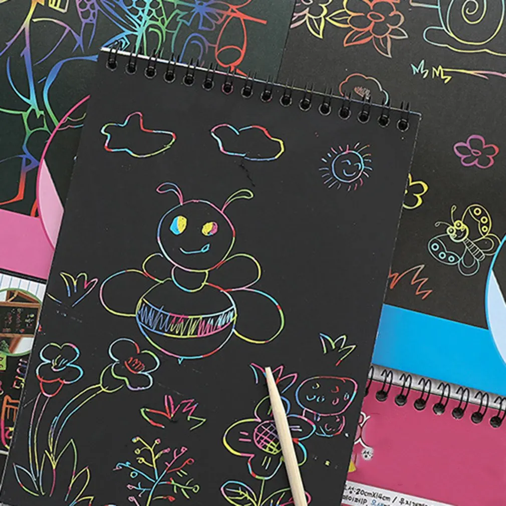 Просто отцарапайте черное покрытие с помощью входящей в комплект деревянной палочки для рисования, чтобы показать цвета под ней.