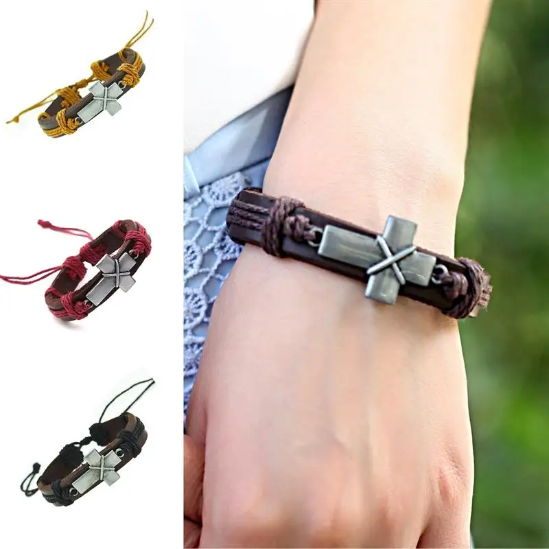 -Отличная ручная работа, изготовленная из мягкого плетеного кожаного материала, коричневый и черный кожаный браслет изготовлен, никогда не выходит из стиля; Удобная одежда, долгое время использования.