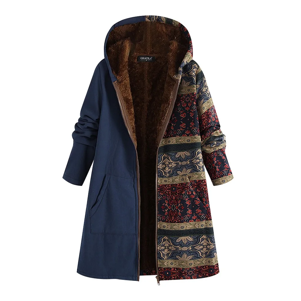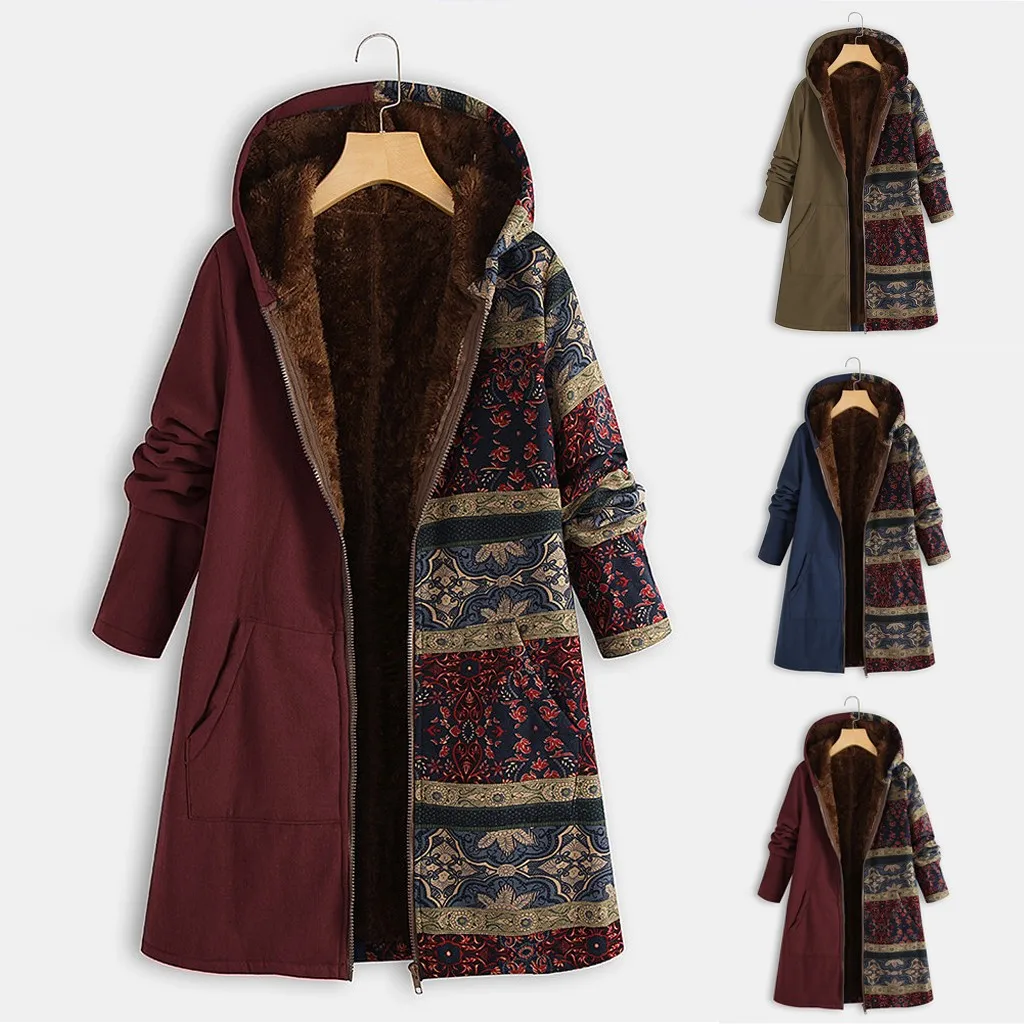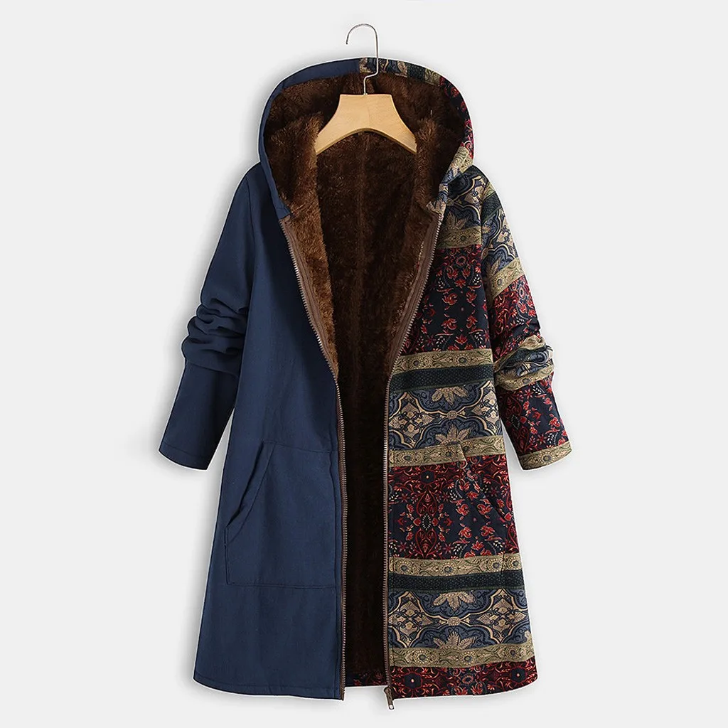 Женское зимнее теплое плотное пальто на молнии с капюшоном и карманами размера плюс