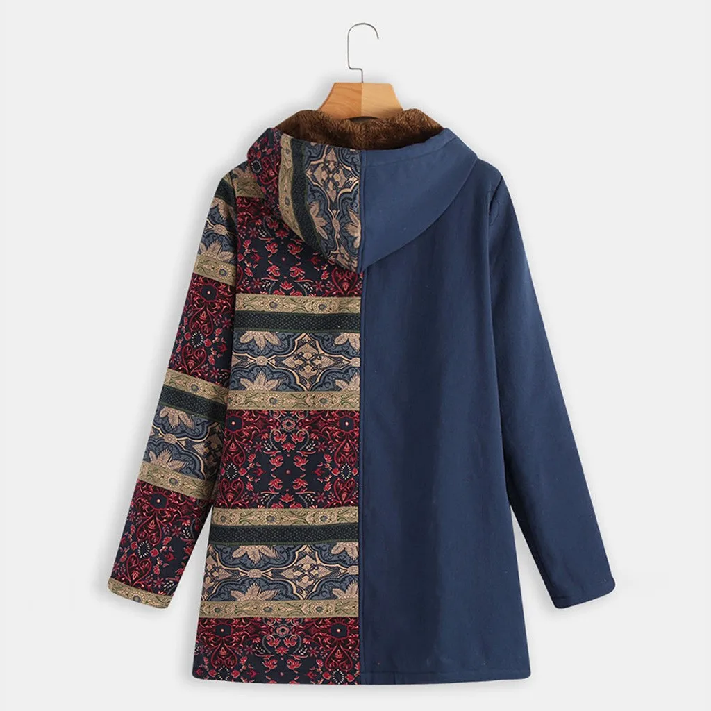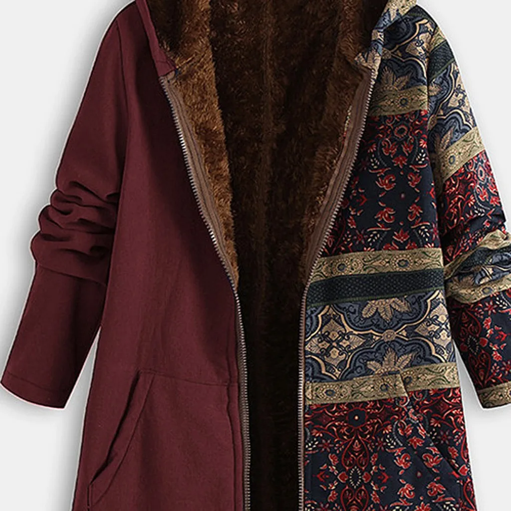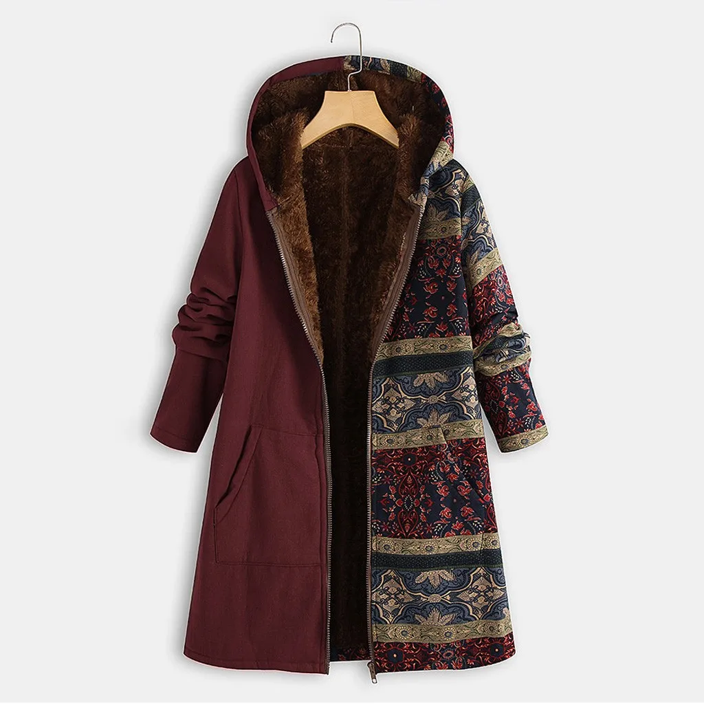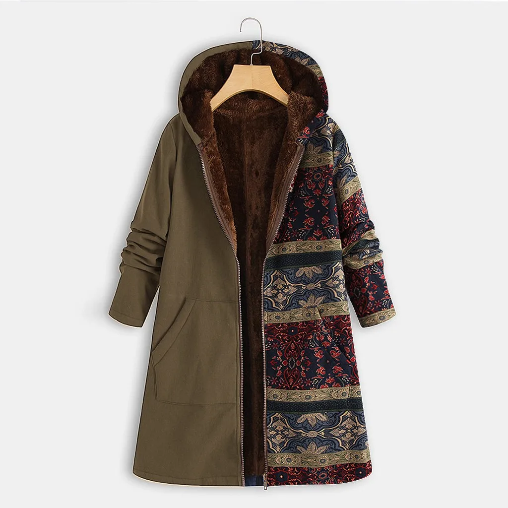 Женское зимнее теплое плотное пальто на молнии с капюшоном и карманами размера плюс