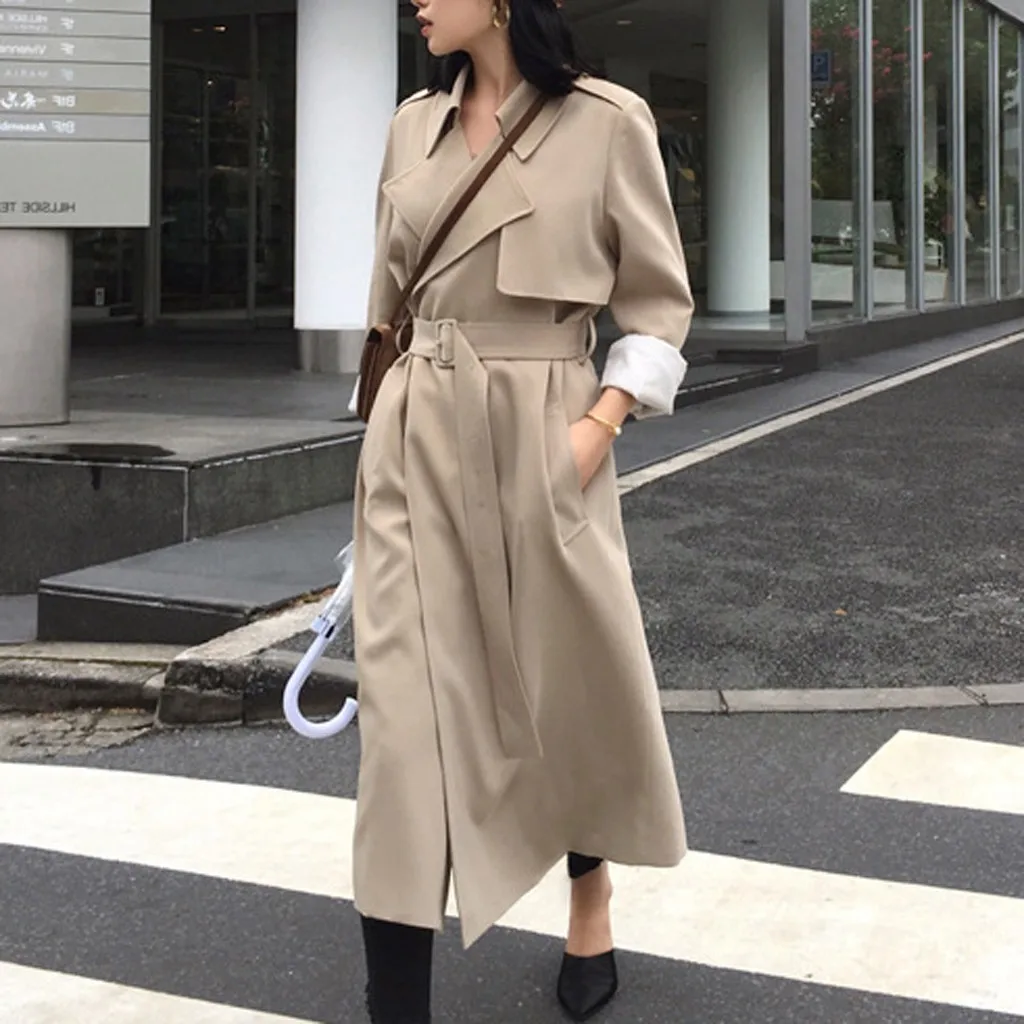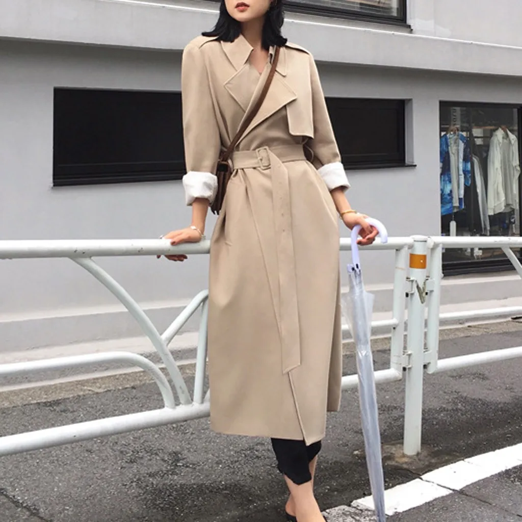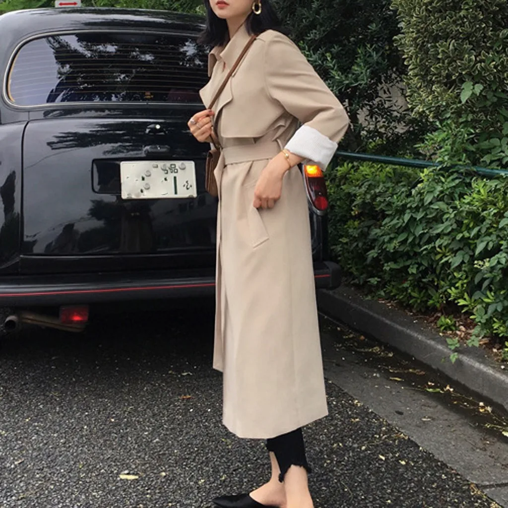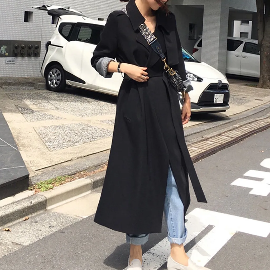 Женский Длинный Повседневный Кардиган с карманами и поясом, верхняя одежда, пальто-Пыльник, большие размеры