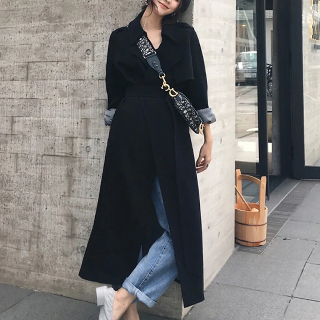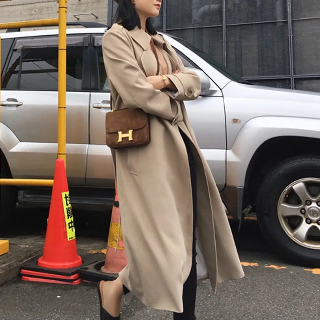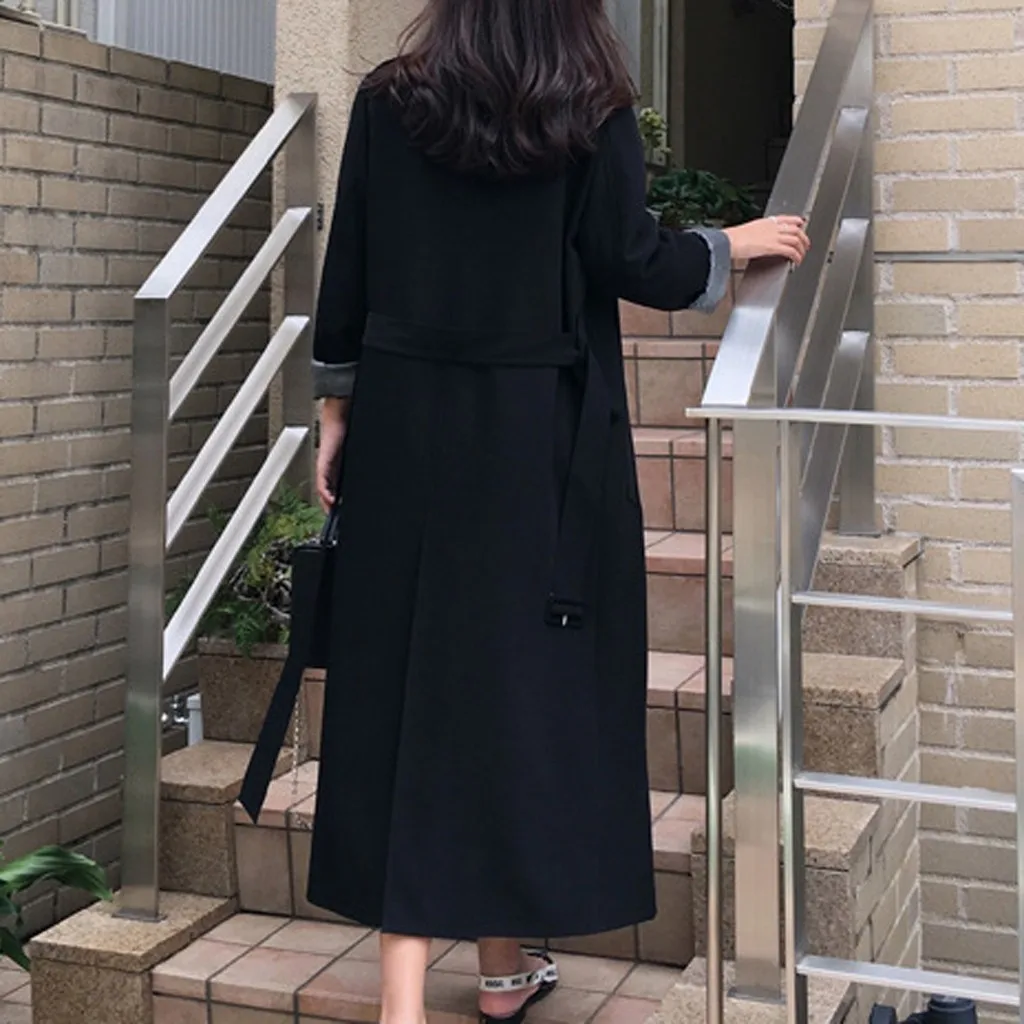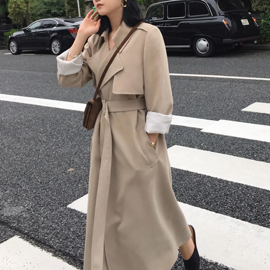 Женский Длинный Повседневный Кардиган с карманами и поясом, верхняя одежда, пальто-Пыльник, большие размеры