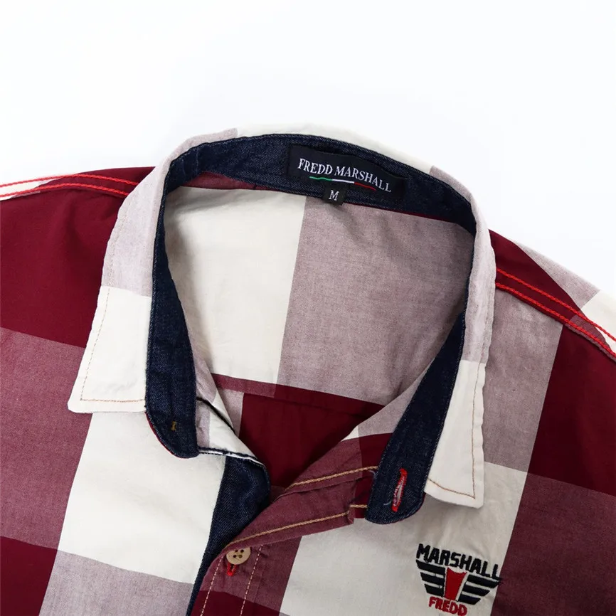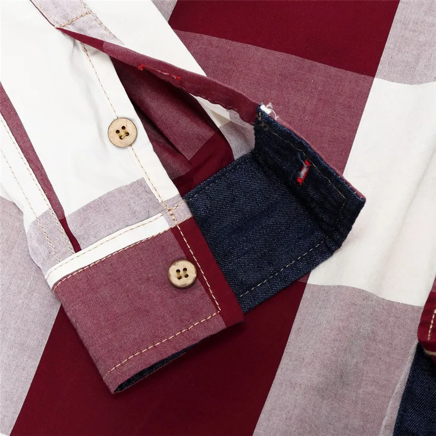 Men's Checked Shirt Long Sleeve Non-Iron Casual Blouse Cotton Slim Fit Plaid Top