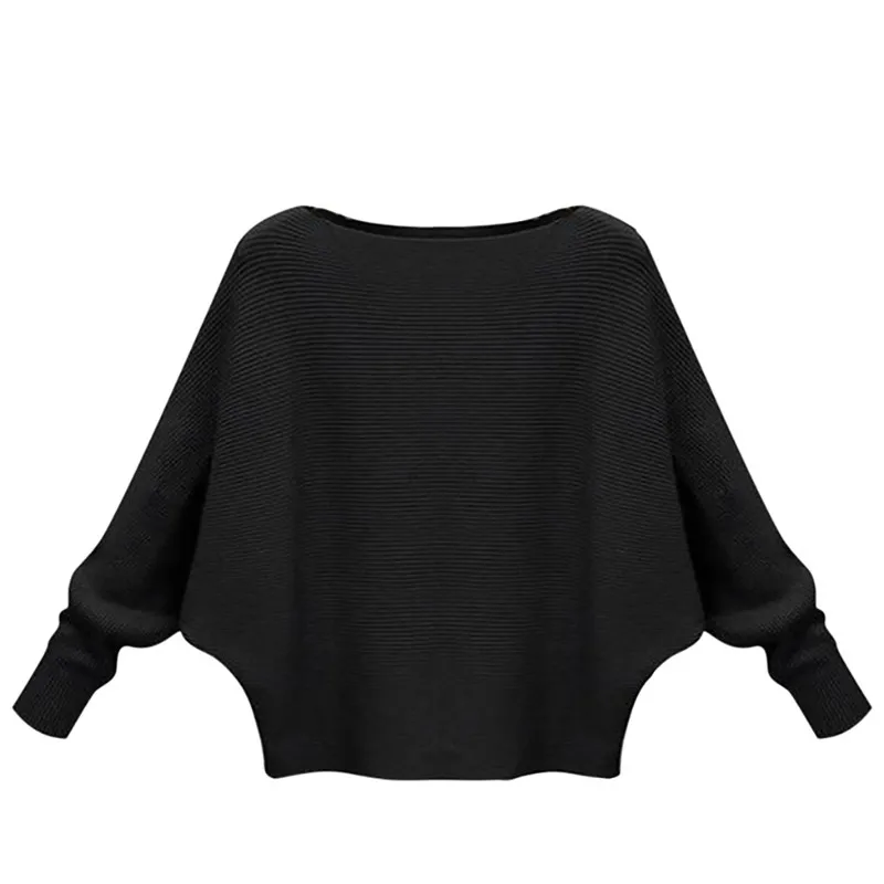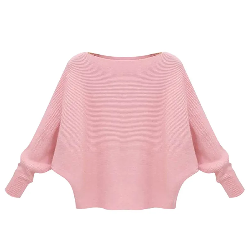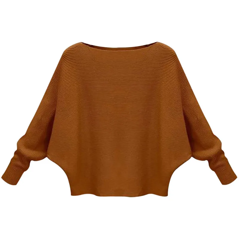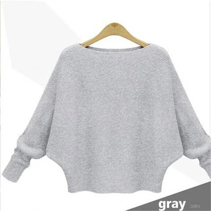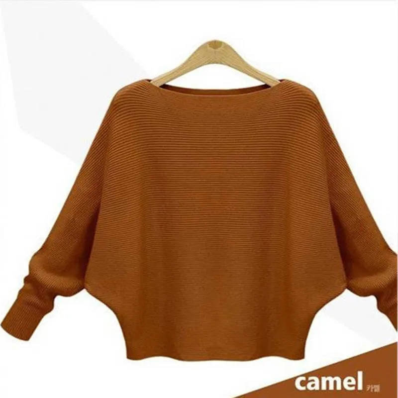 Женские зимние свитера, теплые вязаные повседневные топы с рукавом летучая мышь и круглым вырезом, блузка
