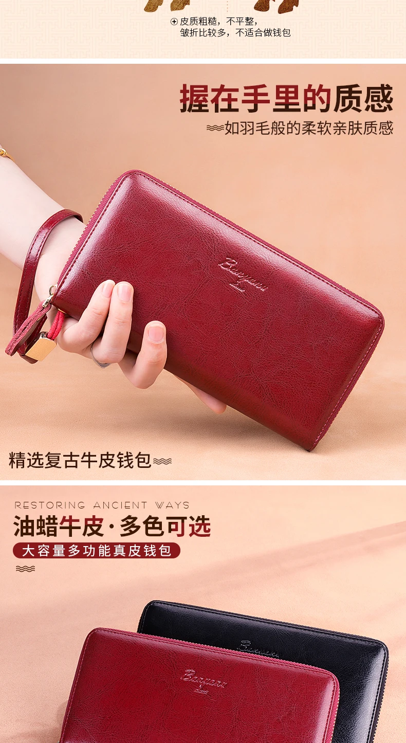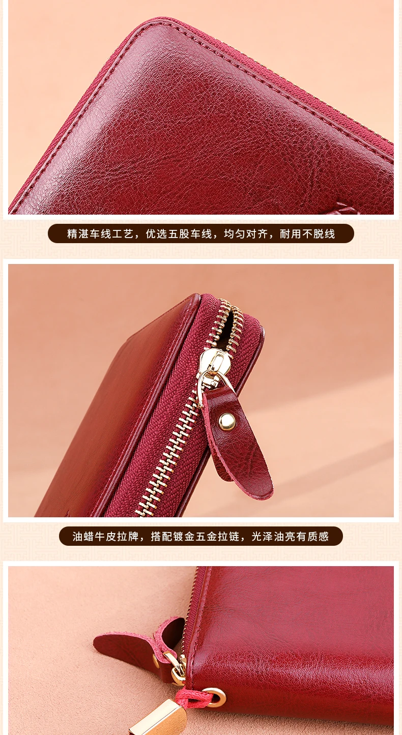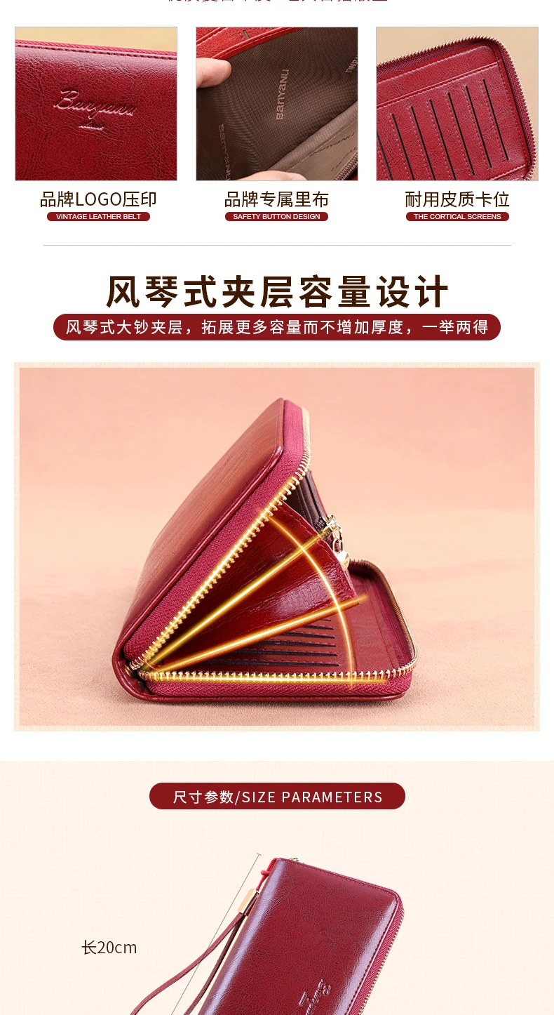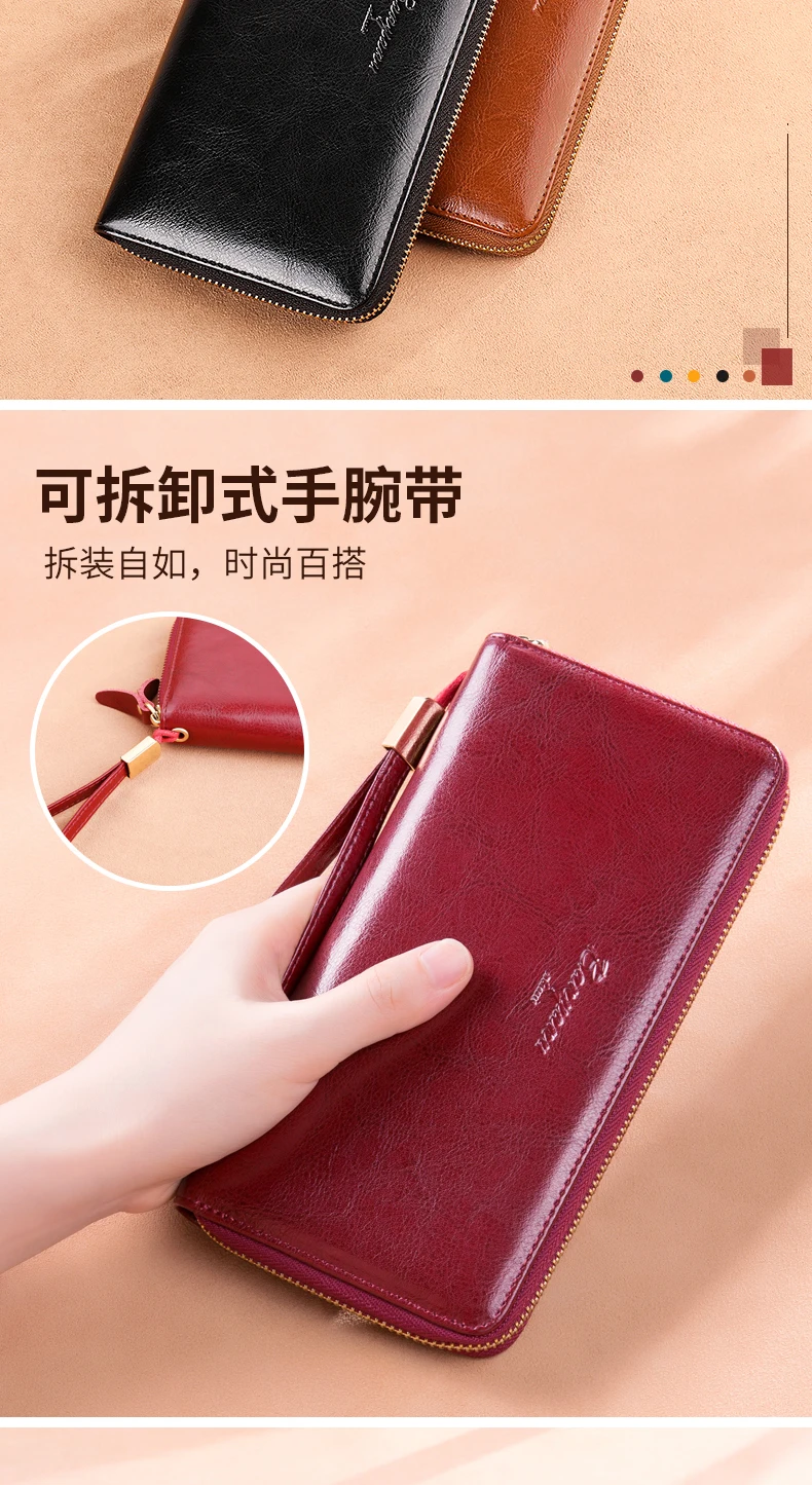 Кошелек женский из кожи высокого качества на молнии с карманом для монет и