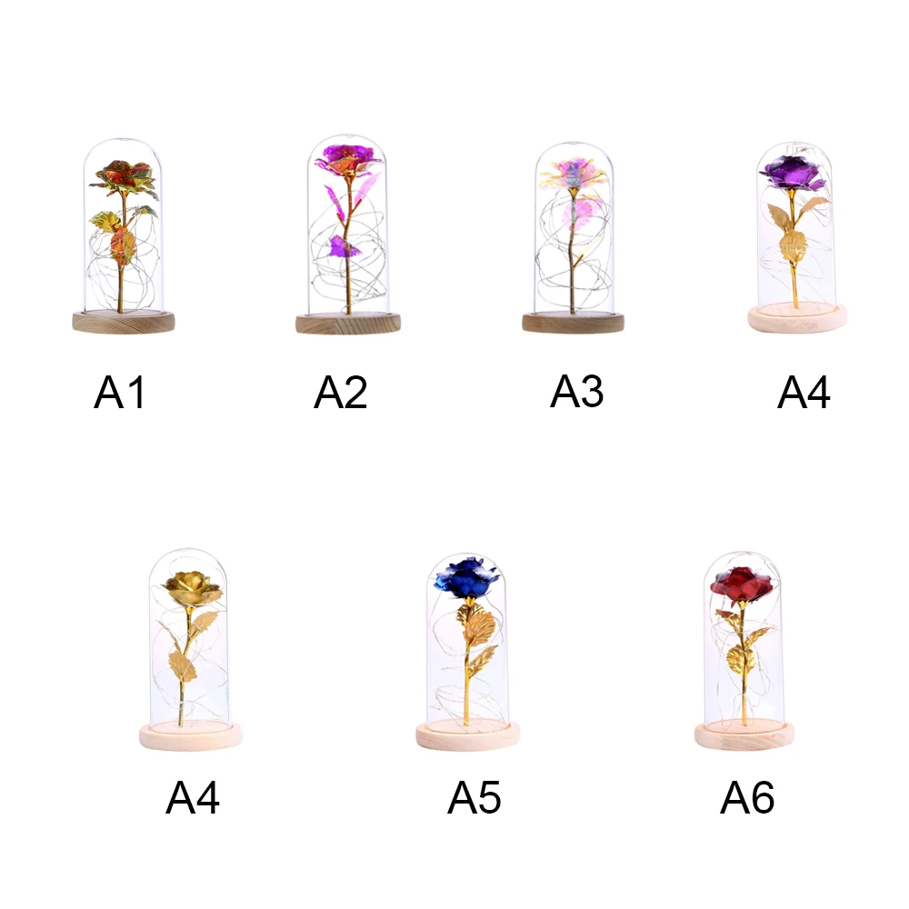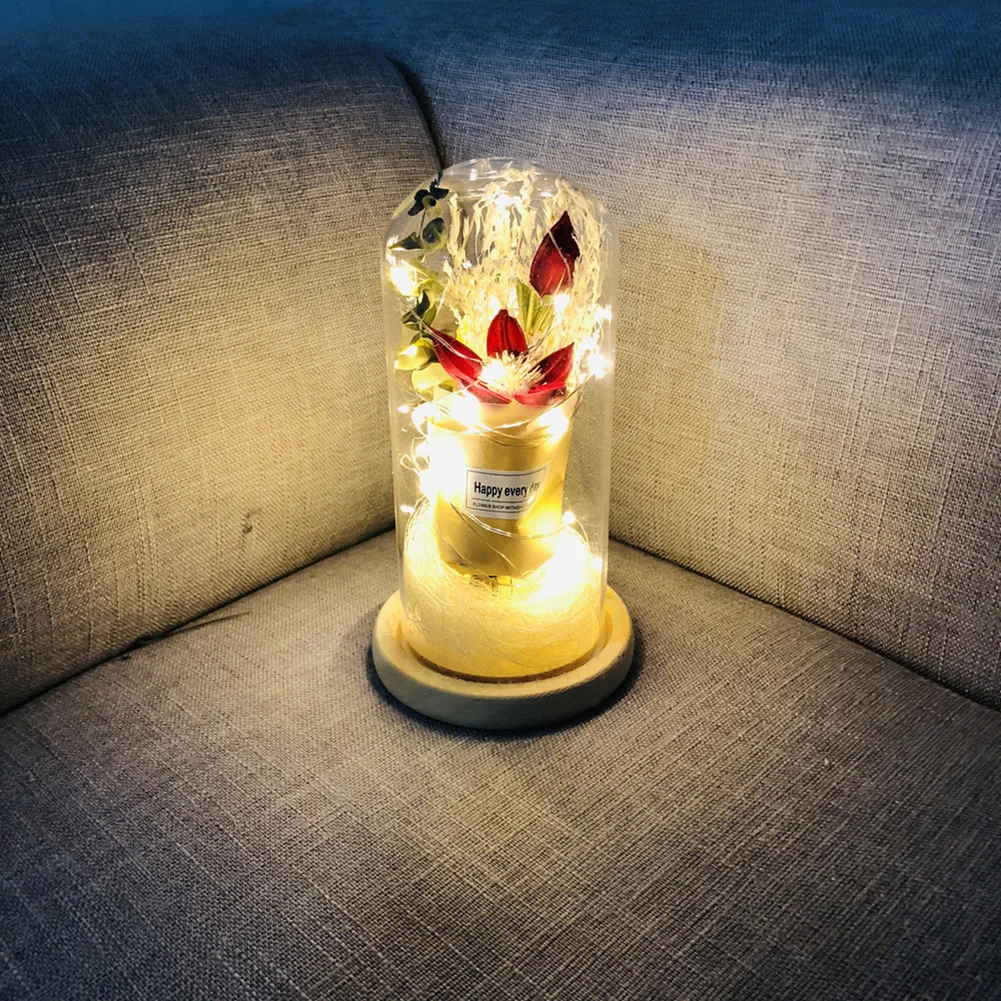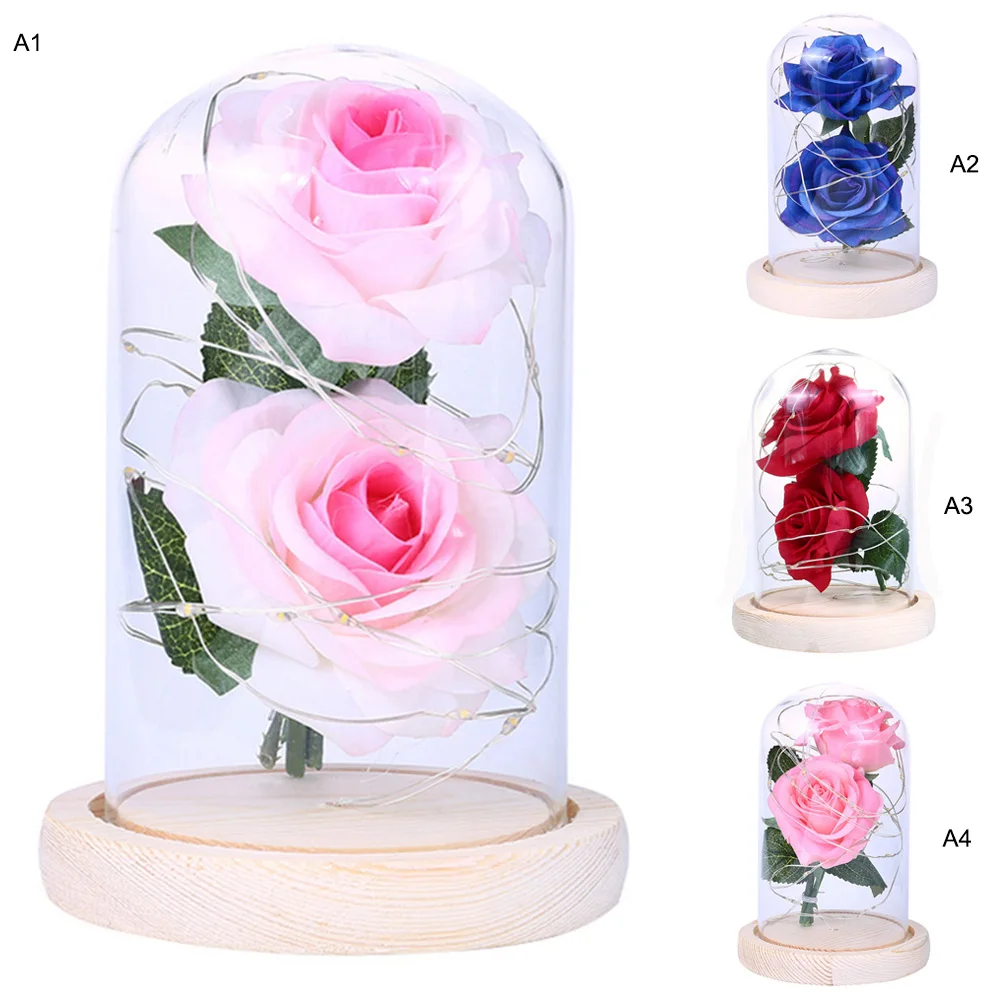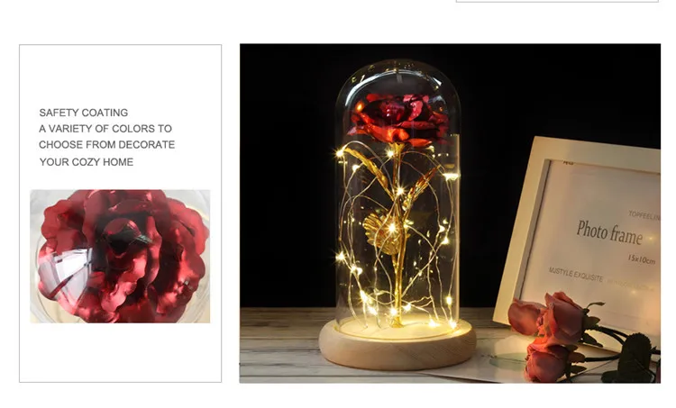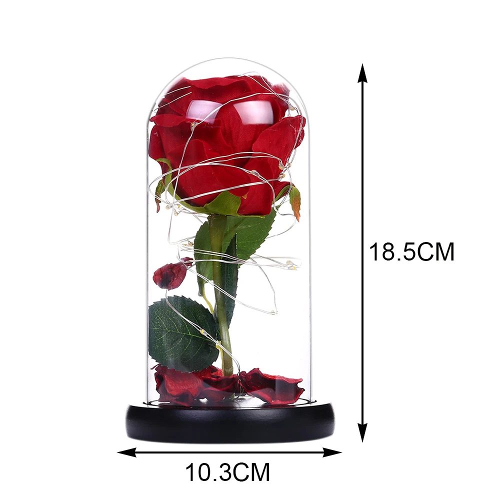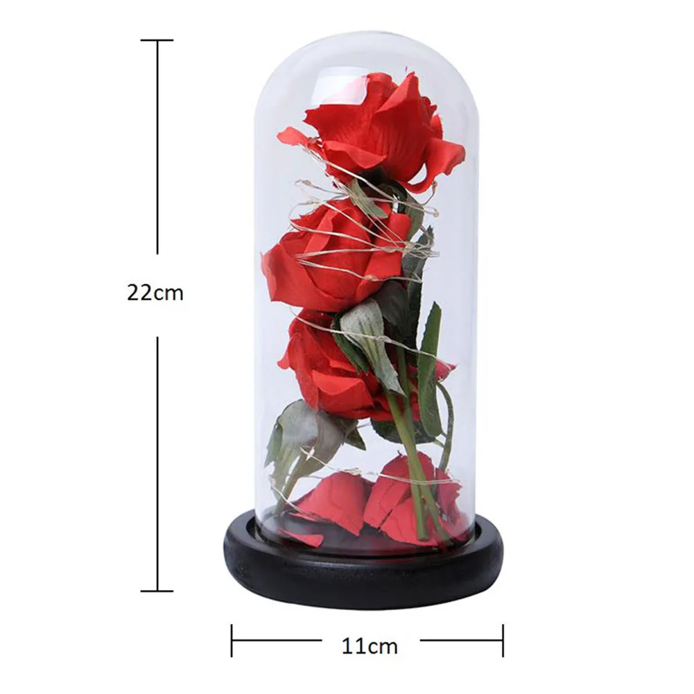 Красота и чудовище, вечный цветок розы в стеклянном куполе цветок деревянная основа золотой лист Роза подарок на день Святого Валентина светодиодный лампы с розами
