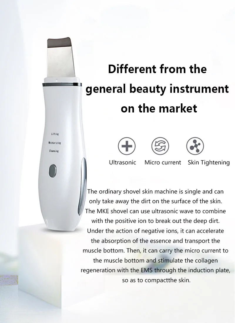 Ультразвуковой шпатель для скруббера кожи ультразвуковая ионная глубокая