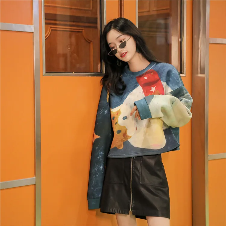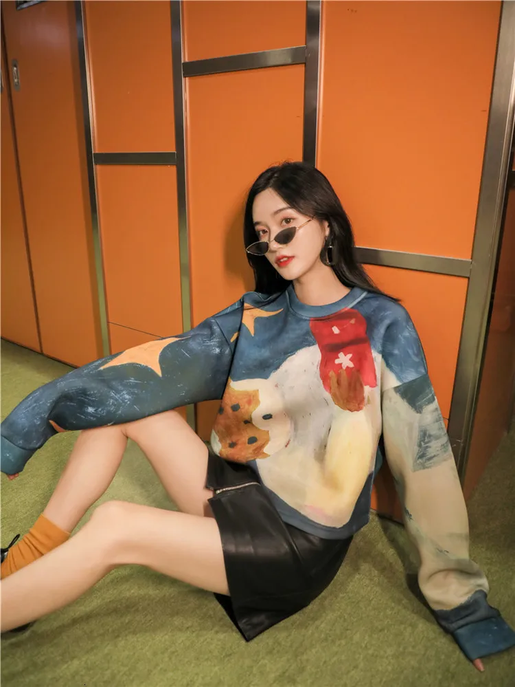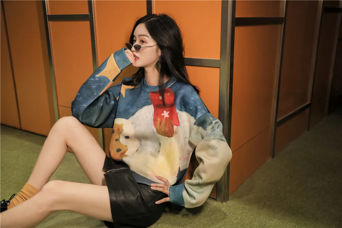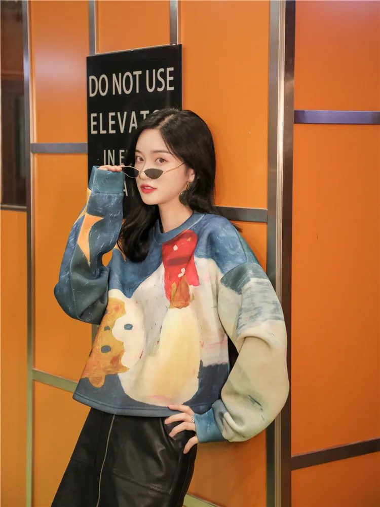 Женская толстовка с капюшоном большого размера плюс длинным рукавом и принтом на