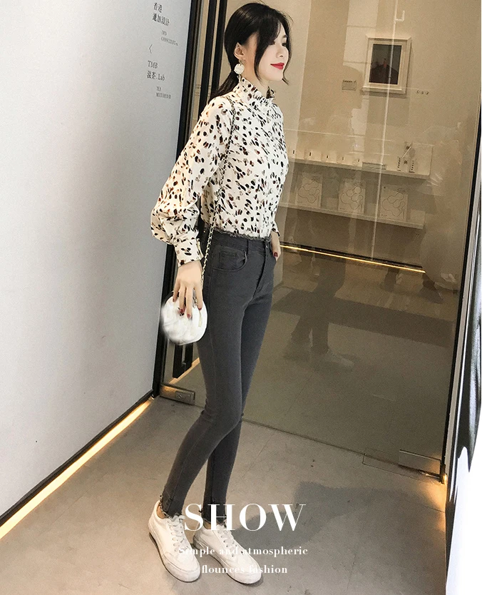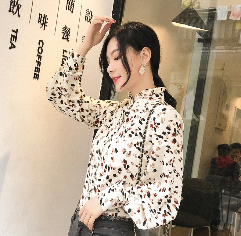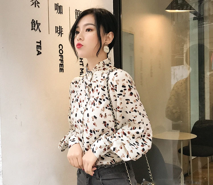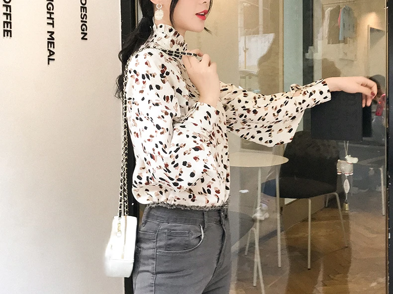 Новинка осени 2019, женская шифоновая блузка, Модный цветочный принт, водолазка, длинный рукав, женская рубашка, повседневные топы T9N109K