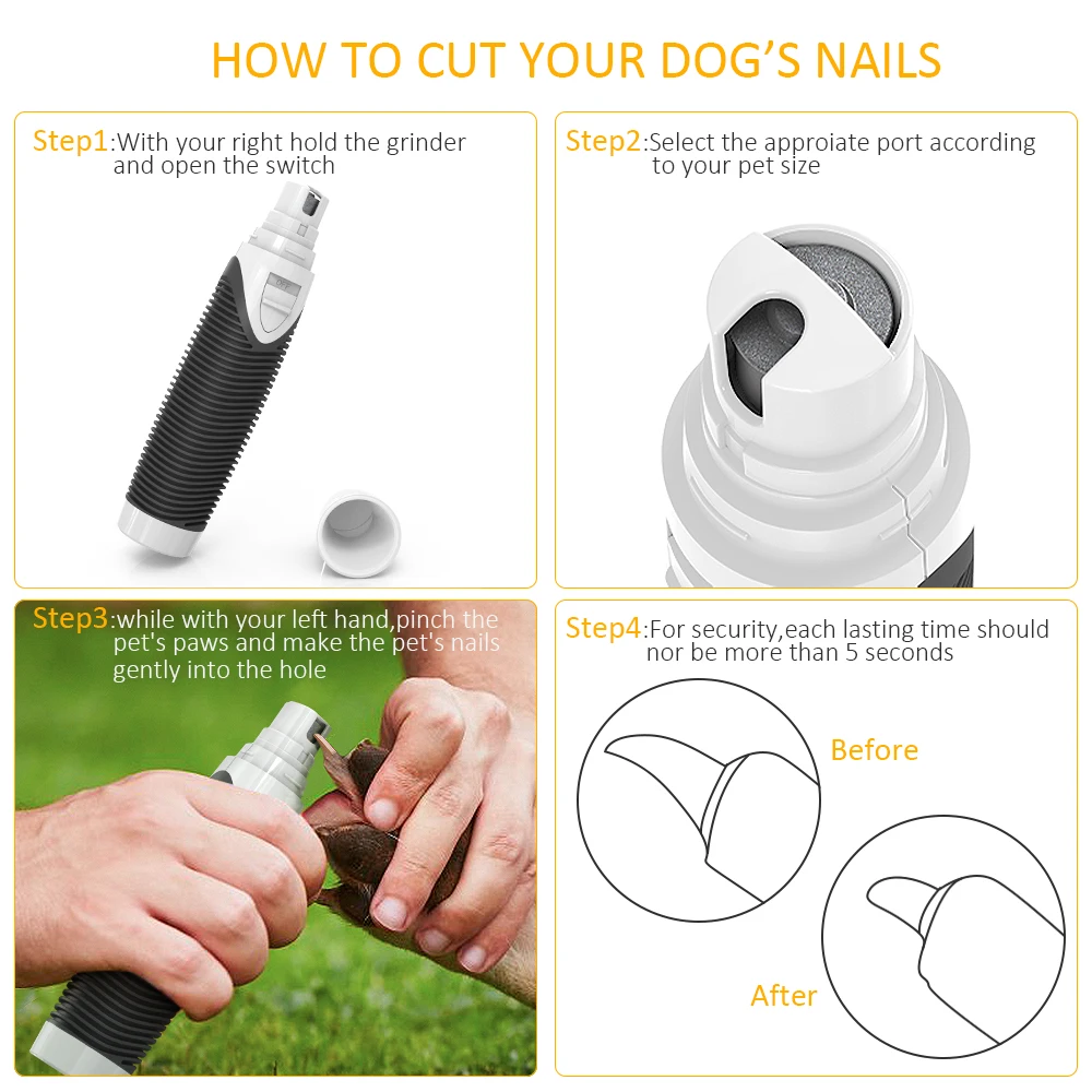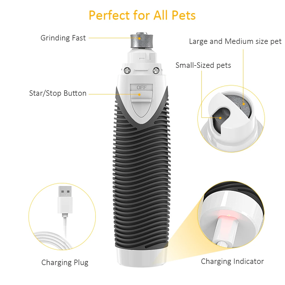 Съемный шлифовальный алмазный бит:Примите съемное алмазное долото, которое является безопасным и более эффективным, чем кусачки для ногтей, чтобы обрезать ногти домашних животных, ruducing риск перерезания, неприятные боли или кровотечения.