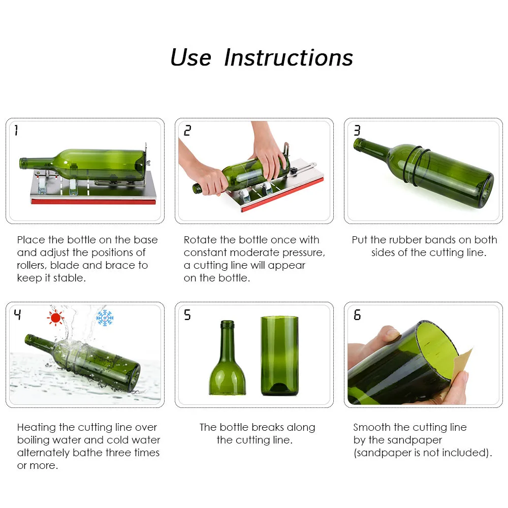 Professional Glass Bottle Cutter: it consists of a base, a back brace, 3 rollers and a blade. Comes with installation parts, easy to assemble.