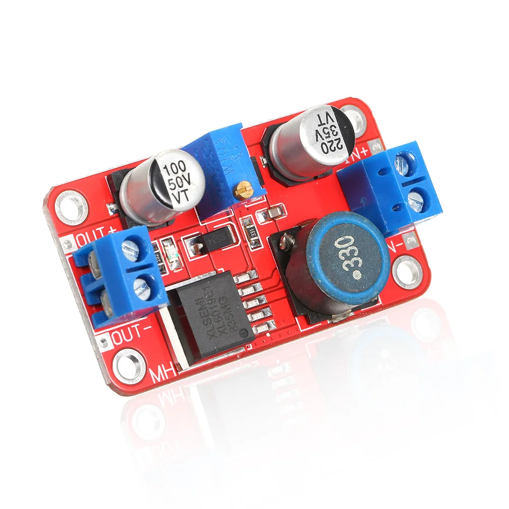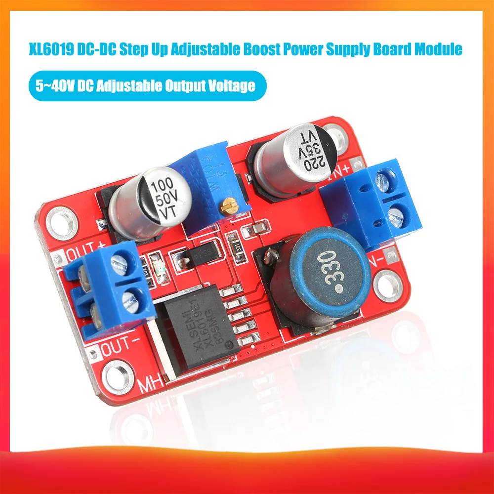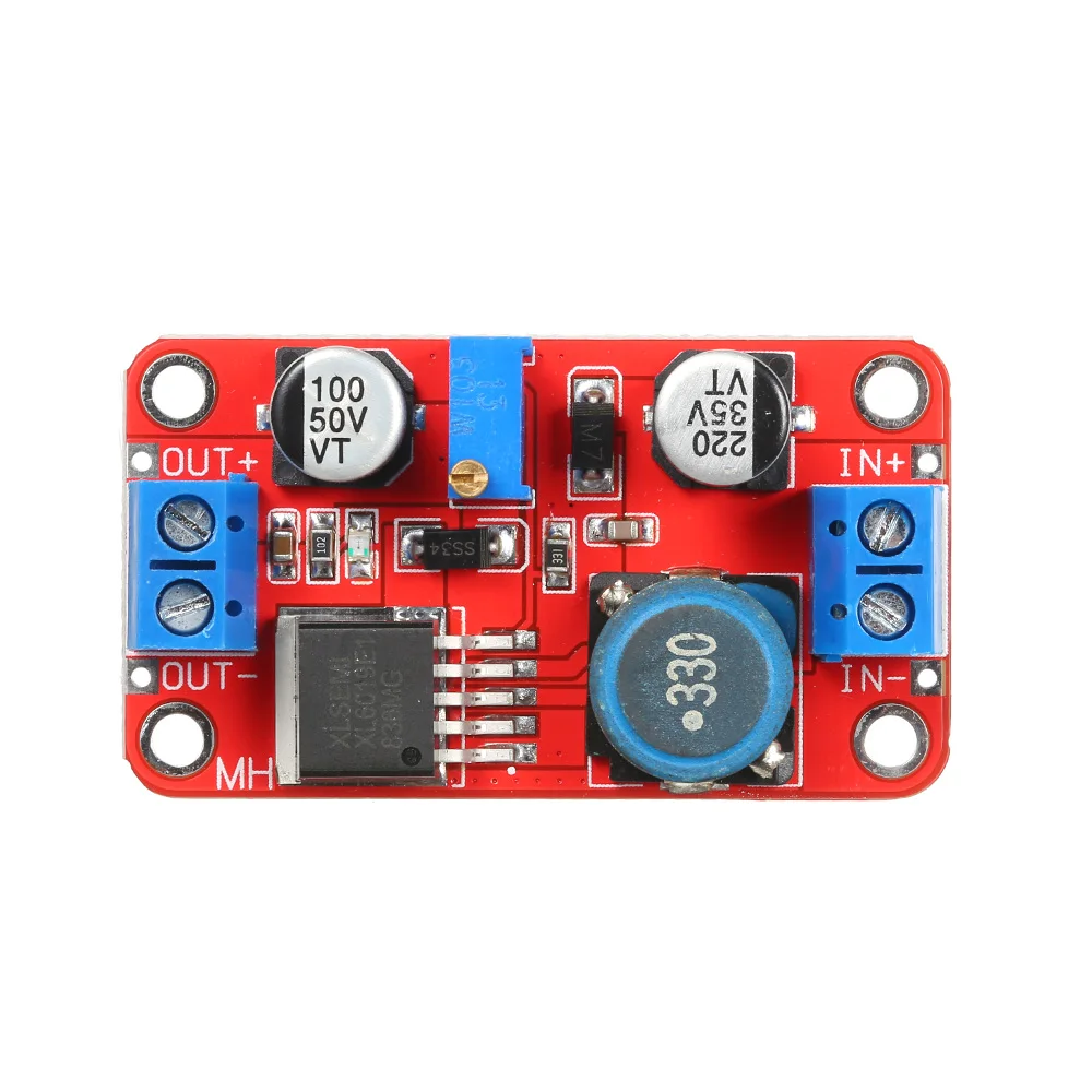 Выходное напряжение этого повышающего модуля постоянно регулируется (5-40 в). Его эффективность преобразования до 90%.