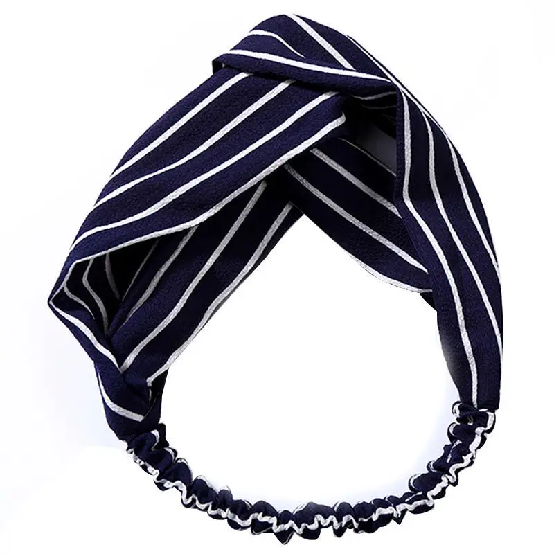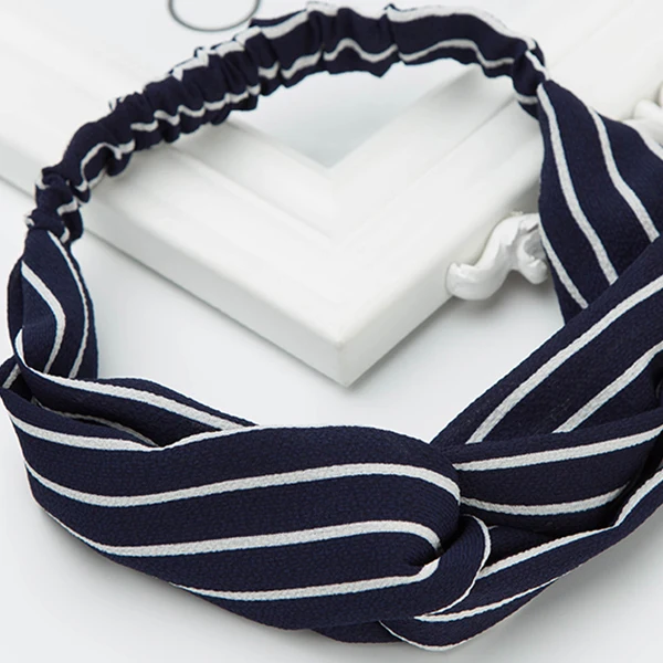 Модный узелок на голову турбан эластичная ободок для волос головной платок аксессуары женщин и девочек полосатый убор темно-синий.