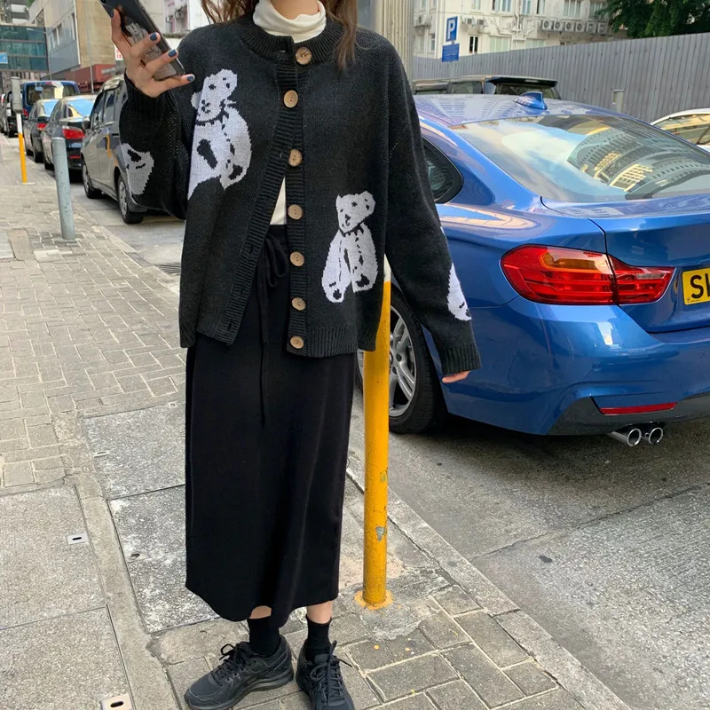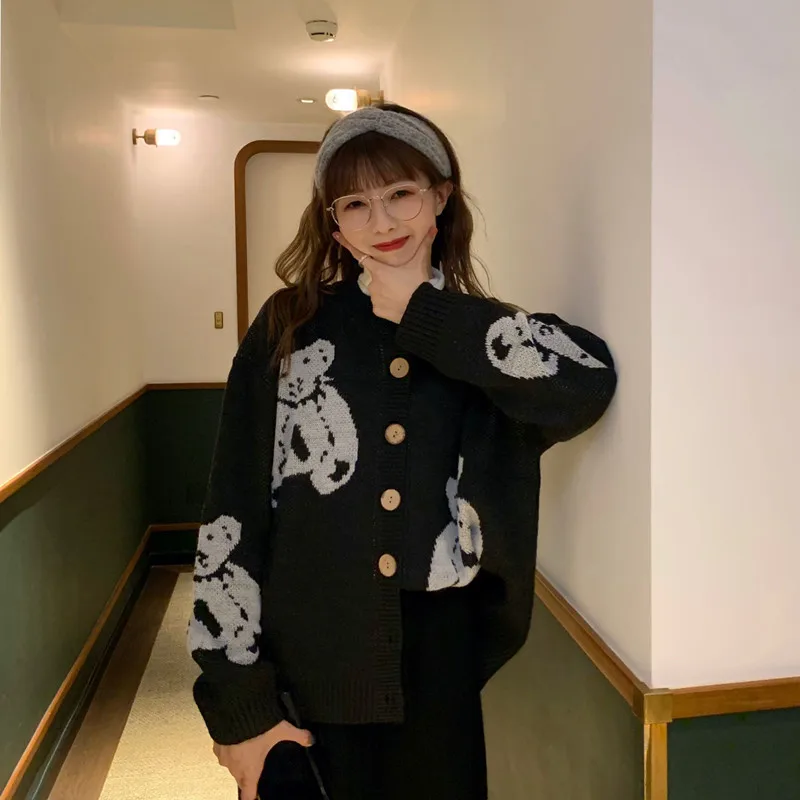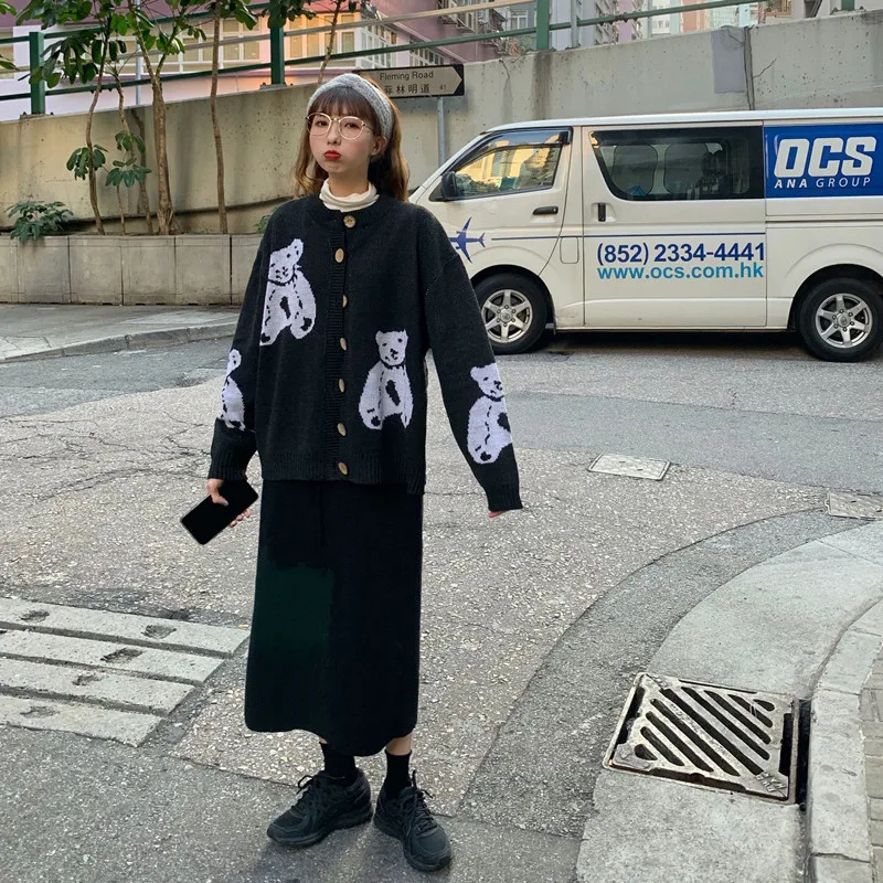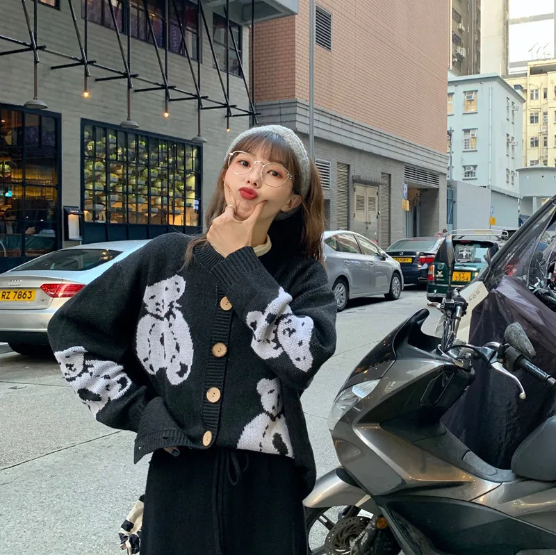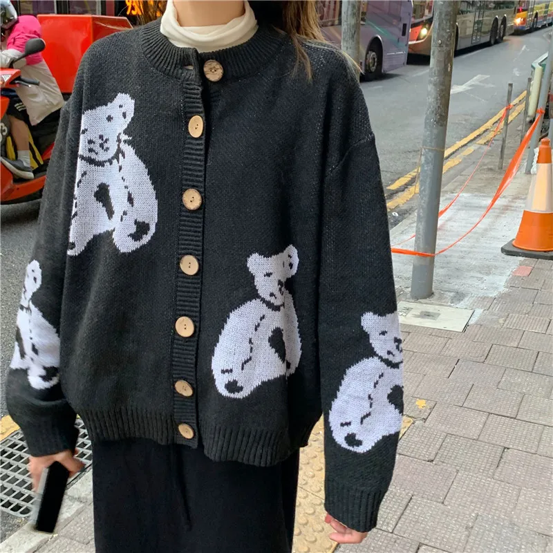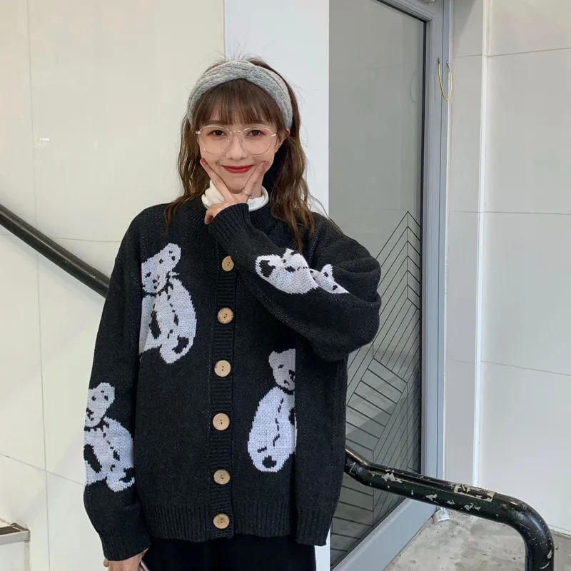 2019 Повседневный рисунок с милым медведем вязаный свитер женский кардиган Feminino Однобортный толстый зимний Кардиган с рукавами «летучая мышь» Если вам это нравится, пожалуйста, не пропустите ее. Получить один и показать свой уникальный шарм. И мы готовы, если вы можете следить за нашим магазином Одри.