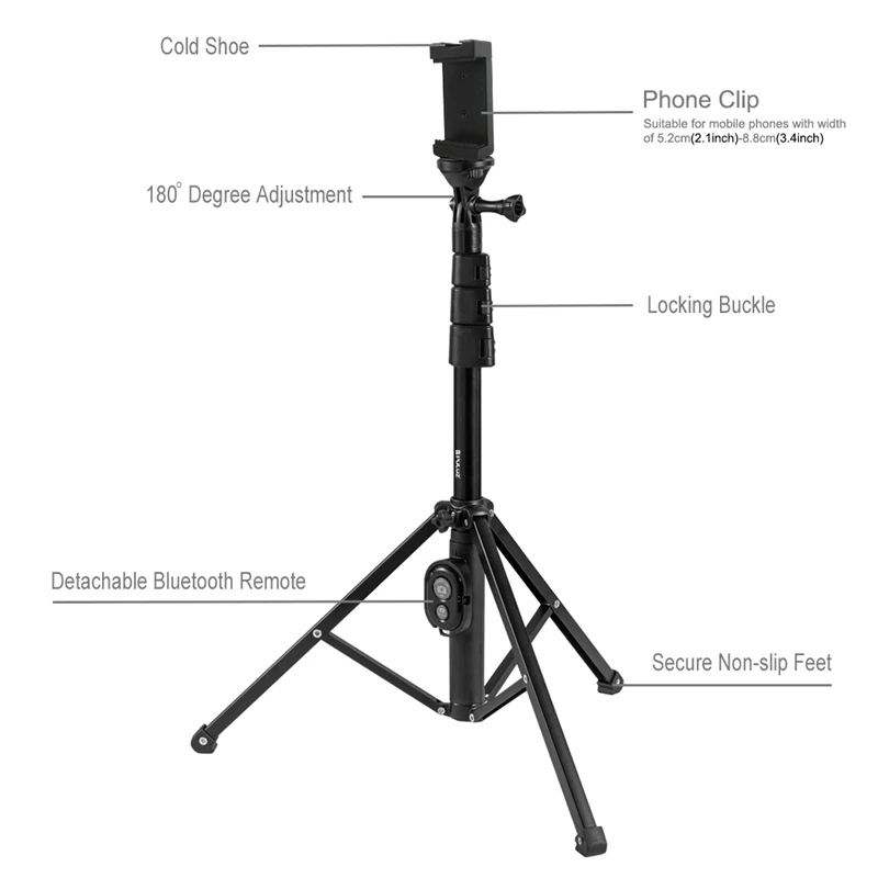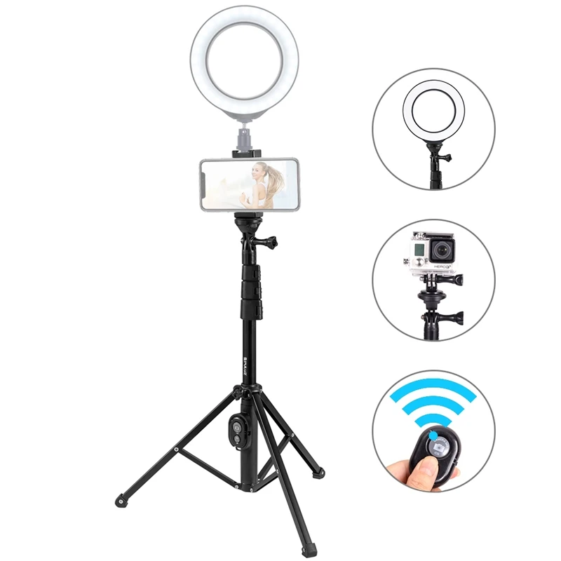 PULUZ, Bluetooth, пульт дистанционного управления затвором, штатив для селфи, 1/4 дюймов, крепление, держатель и зажим для телефона, для селфи, кольцевой светильник, Vlogging Live, Broadc