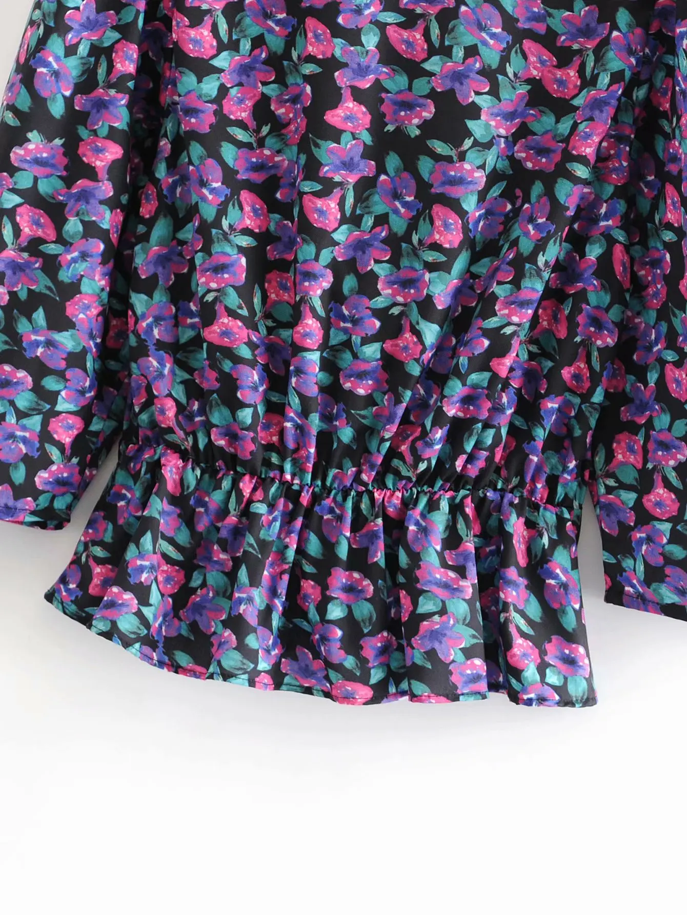 Элегантные складки блузка для женщин с длинным рукавом и v образным вырезом