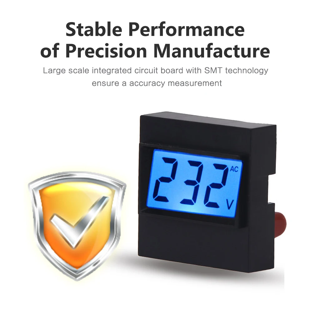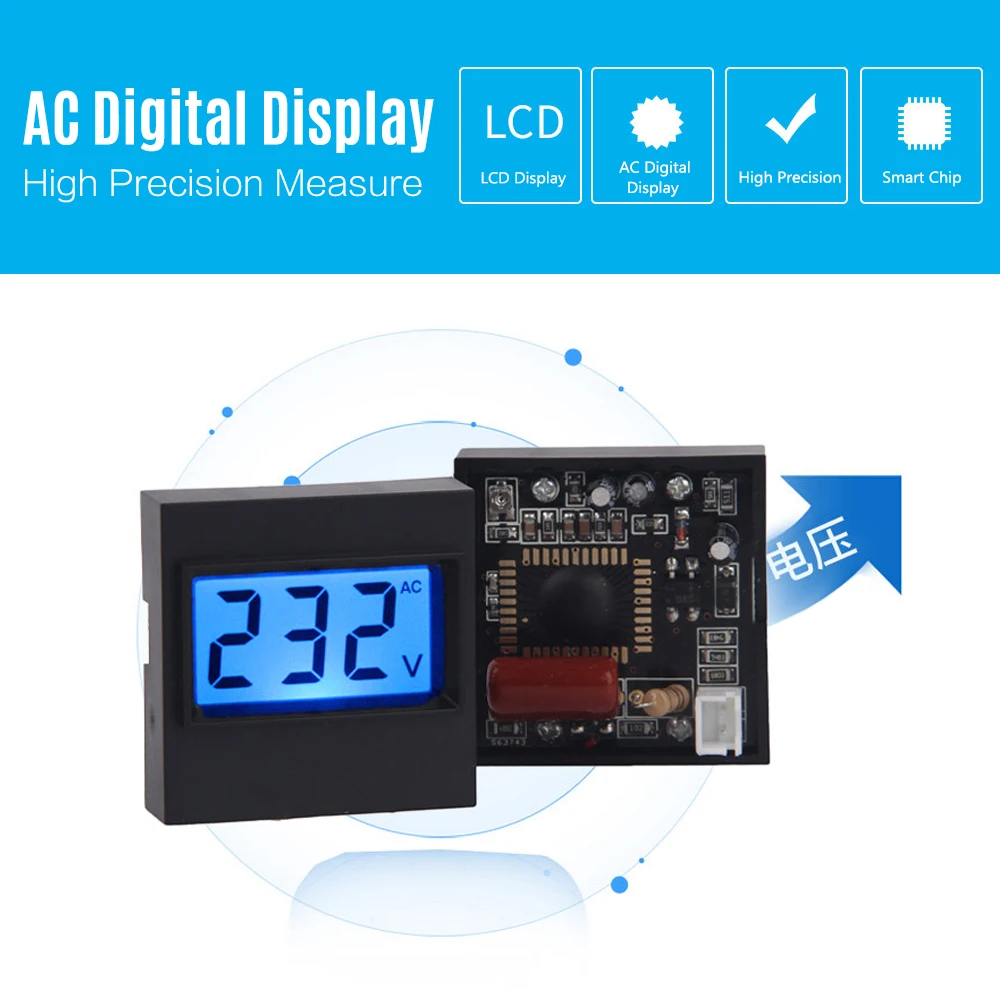 Особенности: Широкий диапазон измерений: Этот ЖК-дисплей монитор напряжения диапазон измерения напряжения составляет 80-380 В переменного тока, с низким потреблением. Умный чип: есть умный чип внутри счетчика, сотрудничающий с технологией SMT для точной регулировки, он сделал тестер цифровым более стабильным и точным. ЖК-дисплей: Встроенный цифровой ЖК-дисплей премиум класса с синей подсветкой, этот монитор напряжения удобен для просмотра данных на нем даже в тусклую ночь. Кроме того, он может использоваться как измеритель напряжения, а также как ночной светильник. Премиум качество: корпус ABS полностью защищает вольтметр, влагостойкий, пыленепроницаемый, с длительным сроком службы. Широкое применение: он может широко использоваться в стабилизаторе напряжения, распределительном шкафу, распределительной коробке, таймерном устройстве, трансформаторной подстанции и всех измерителях сетевого оборудования. Технические характеристики: Материал: PCB + ABS Подсветка Цвет: синий Дисплей: ЖК-дисплей Дисплей Рабочая Напряжение: AC80V-380V Точность измерения: 1% Рабочая температура:-20-70 ℃ Солнце: без прямого солнечного света Размер: 40*40 мм/1,6*1,6" Размер установки: 35,5*20,3 мм/1,4*0,8" Вес изделия: 22g/0,78 oz Вес посылка: 27g/0,95 oz Размер посылка: 47*47*37 мм/1,9*1,9*1,5" Посылка список: 1 * Цифровой вольтметр