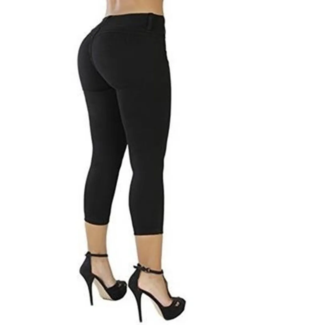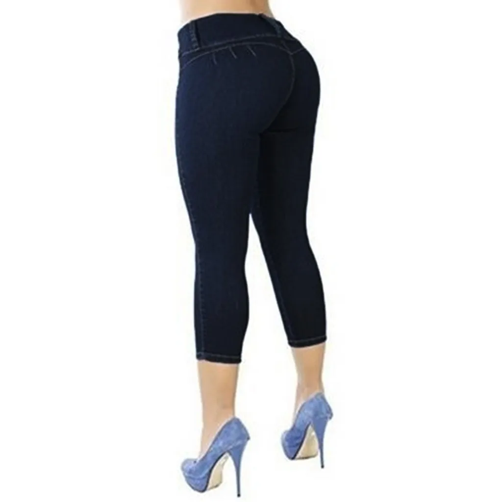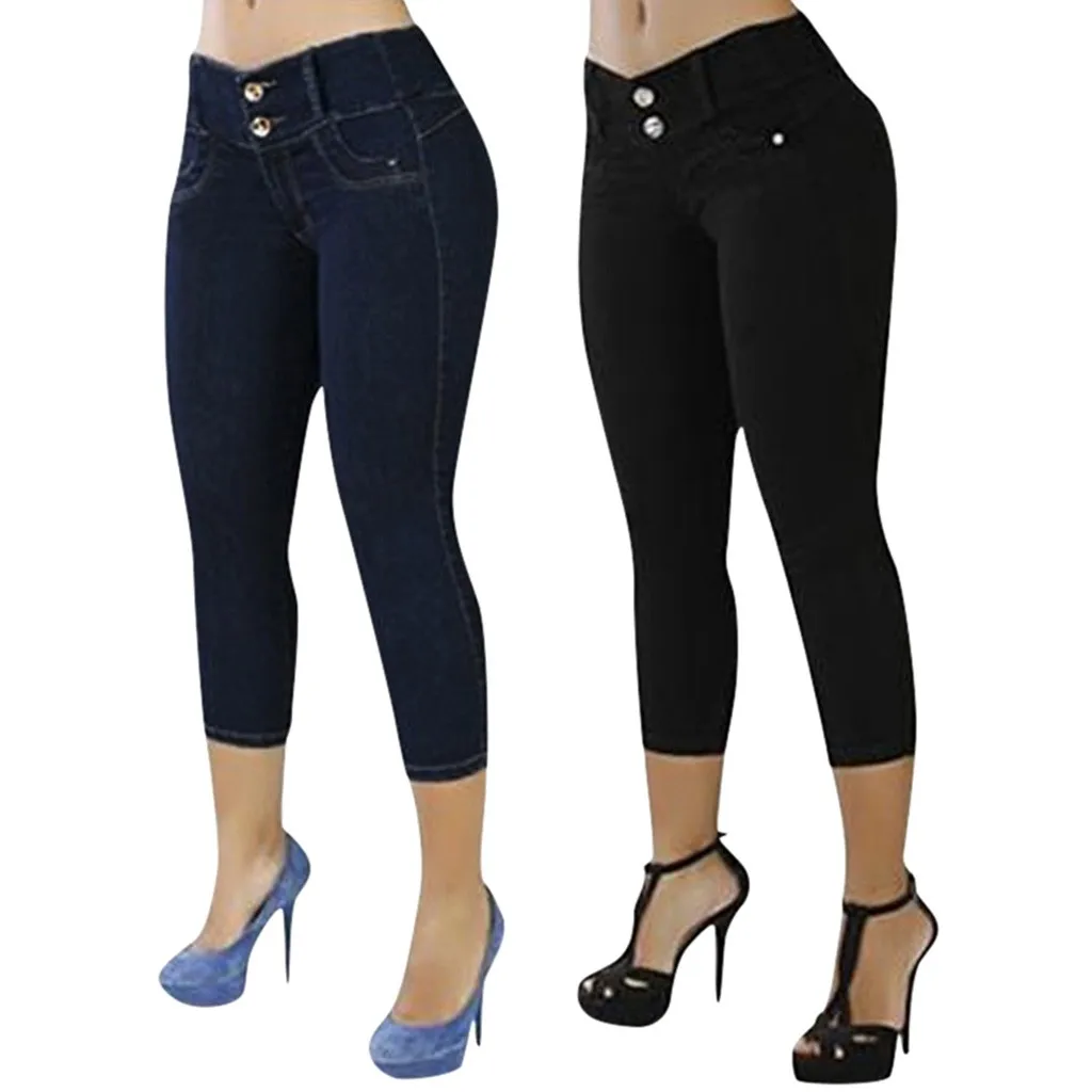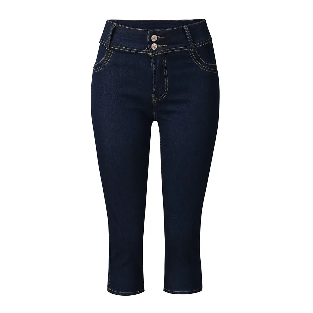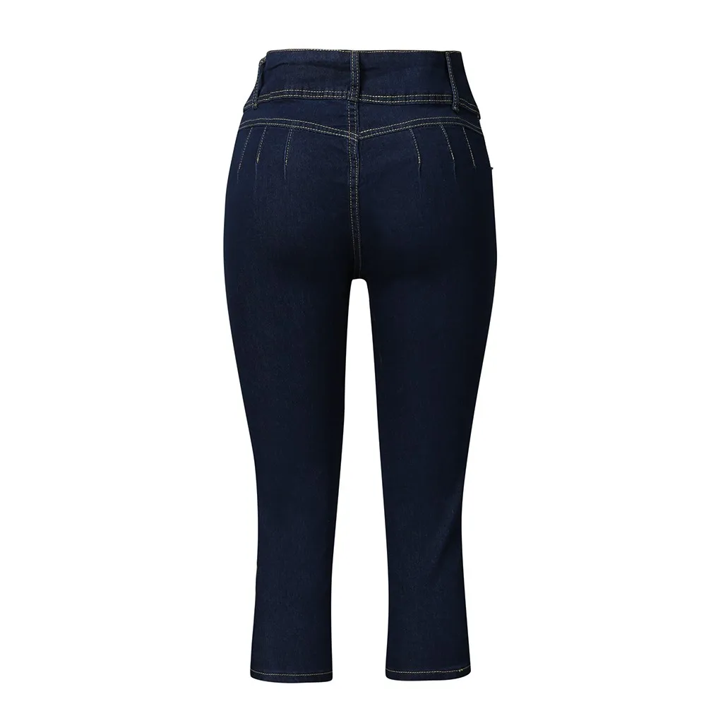 Женские зимние джинсы с высокой талией, эластичный пояс, три четверти, одноцветные джинсы