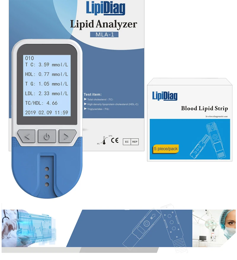 LipiDiag липидный анализатор MLA-1 количественно определяет TC, TG, HDL, LDL (рассчитан) в одной панели Подходящие полоски: липидиаг полоски для липидов крови