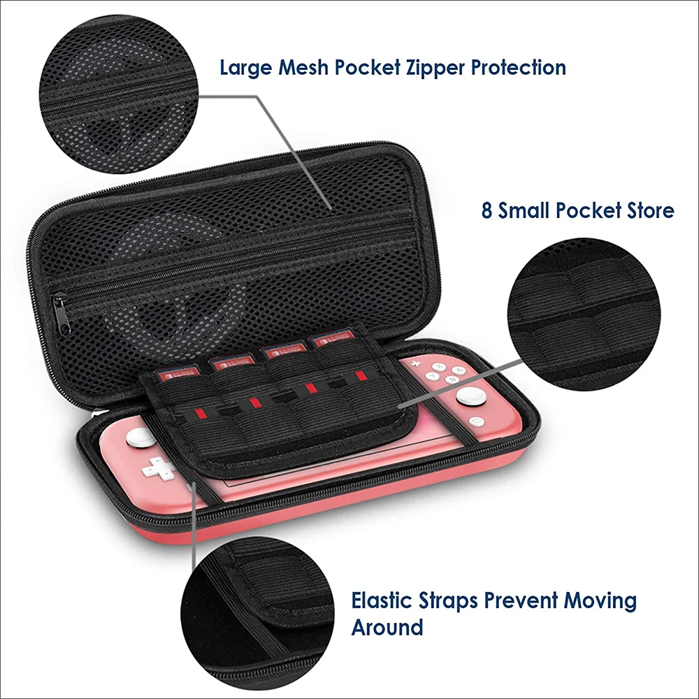 Если вы выбираете упаковку, то в комплект входит 1 сумка + 1 Мягкий ТПУ чехол + 1 Защитное стекло для экрана + 2 джойстика для Nintendo switch lite