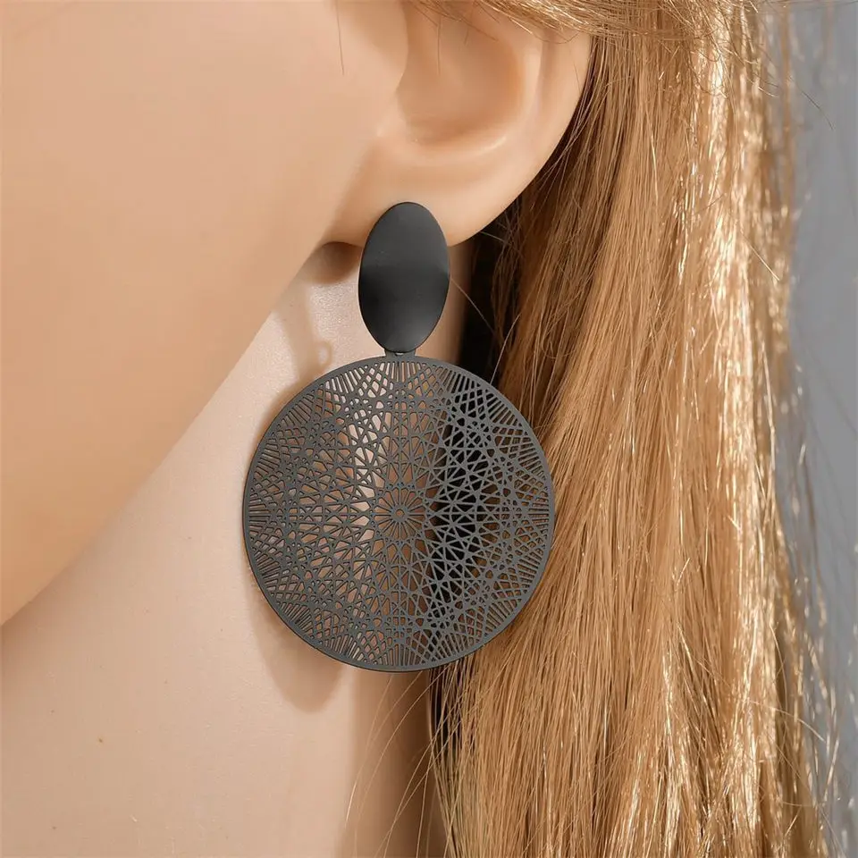 Трендовые серьги 2019 черные круглые Висячие серьги для женщин полые геометрические корейские модные серьги с подвесками ювелирные изделия pendientes