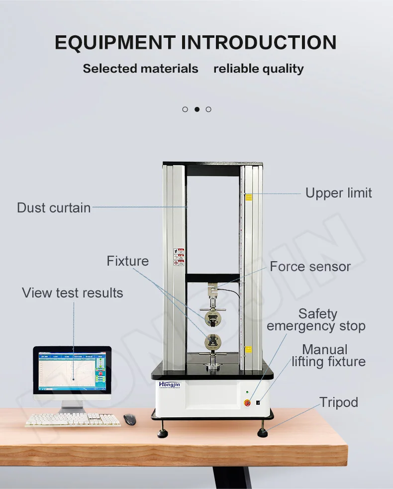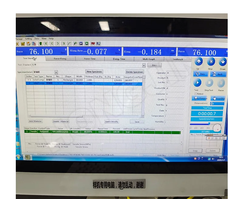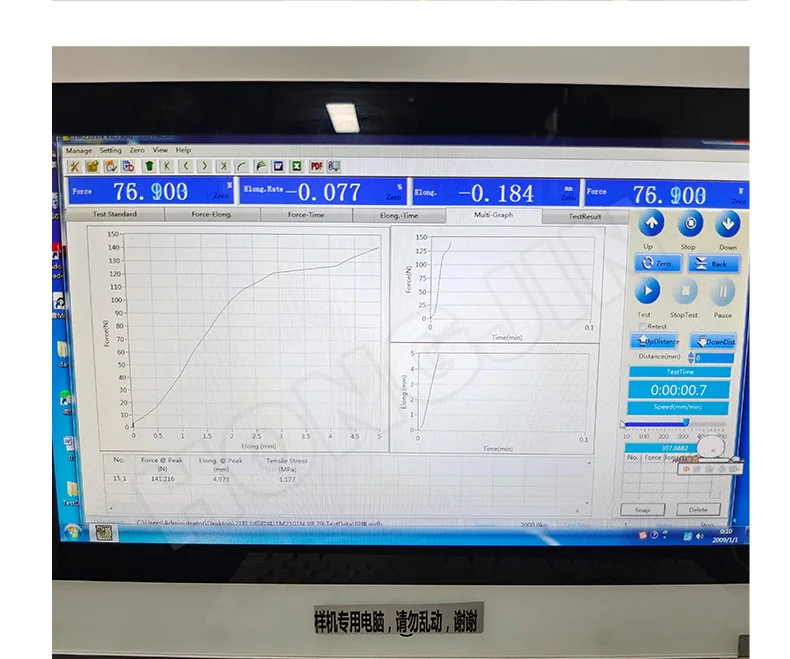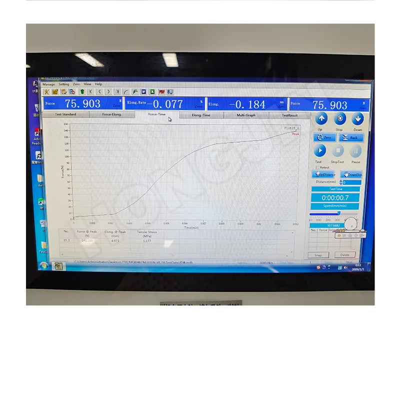 Он имеет функцию автоматического расчета напряжения и удлинения (для добавления экстенсометра), растяжимости и модуля эластичности, автоматической статистики результатов, автоматической записи значения силы или удлинения максимальной точки, точка разрыва, указанная точка, Динамический дисплей тестового процесса и кривая теста с помощью компьютера и обработки данных, после окончания эксперимента.