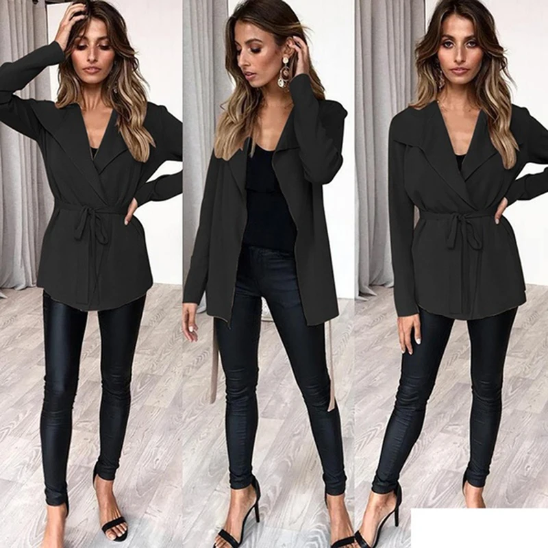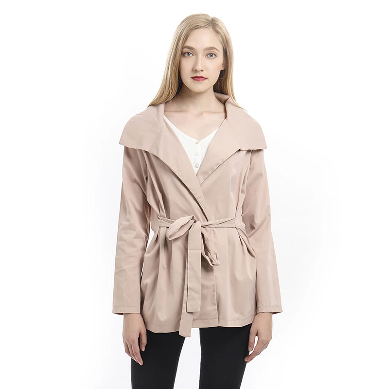 Женская двубортная ветровка на весну осень Короткое женское пальто с завязками